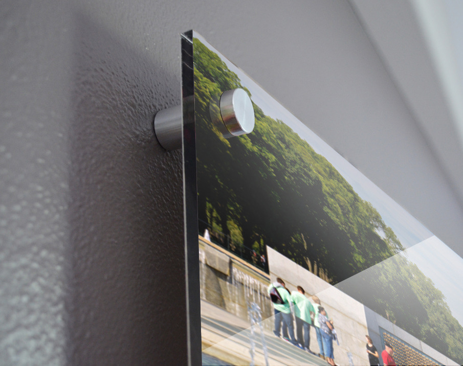 Printed to the edge - Ready to hang - provided with 4 premium polished aluminum stand off ( wall screws and mounting hardware provided )