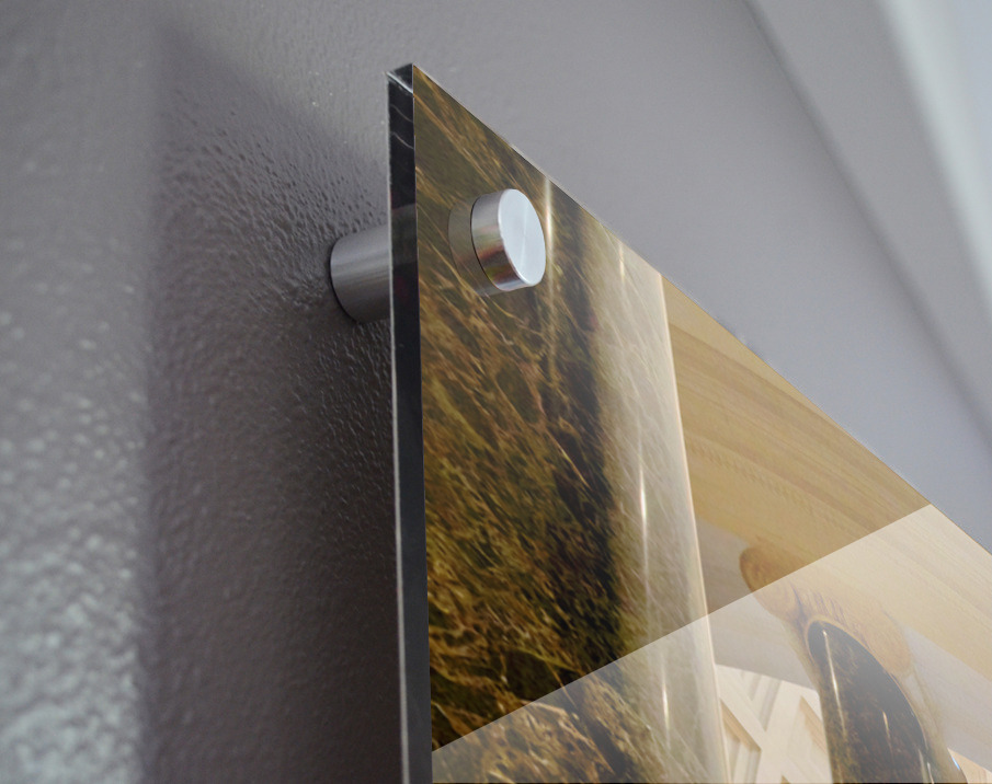 Printed to the edge - Ready to hang - provided with 4 premium polished aluminum stand off ( wall screws and mounting hardware provided )