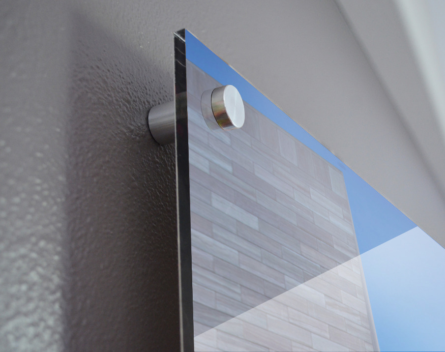 Printed to the edge - Ready to hang - provided with 4 premium polished aluminum stand off ( wall screws and mounting hardware provided )