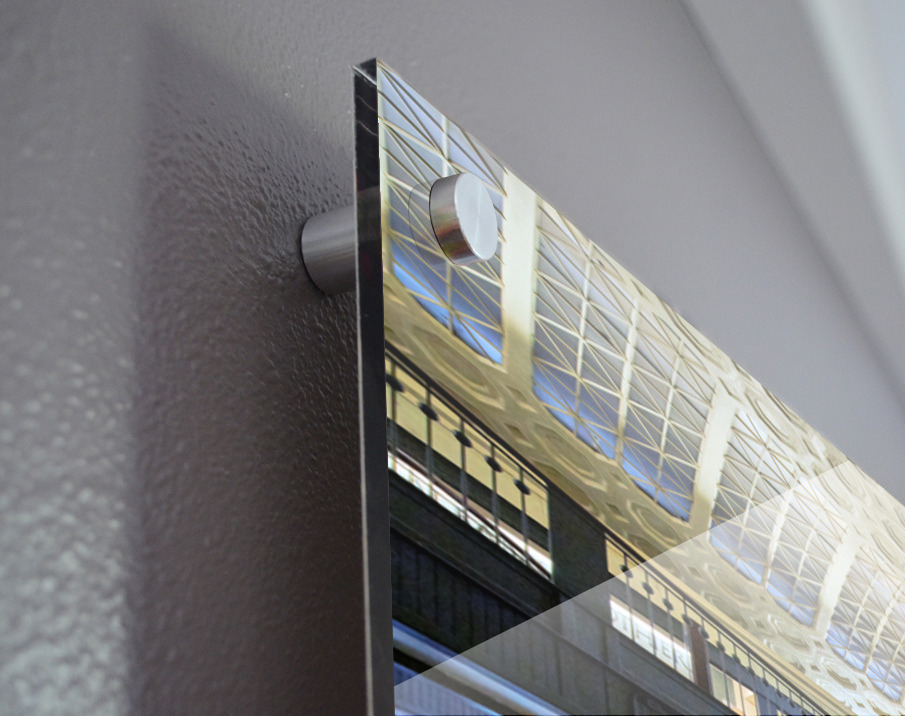 Printed to the edge - Ready to hang - provided with 4 premium polished aluminum stand off ( wall screws and mounting hardware provided )