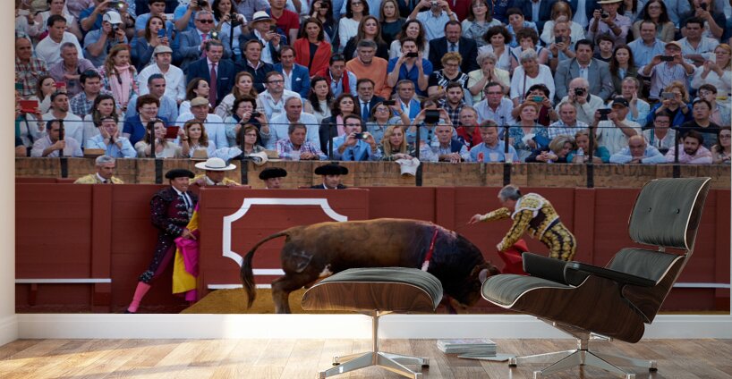 ANDALUSIA SPAIN. Bullfight in Seville Arena Wood print