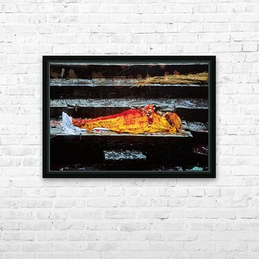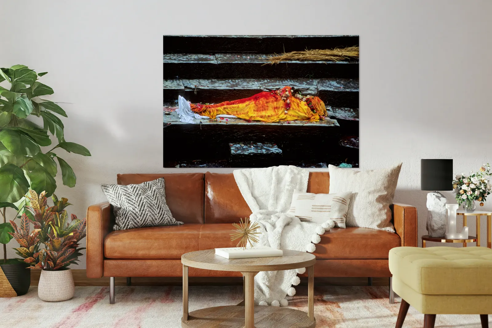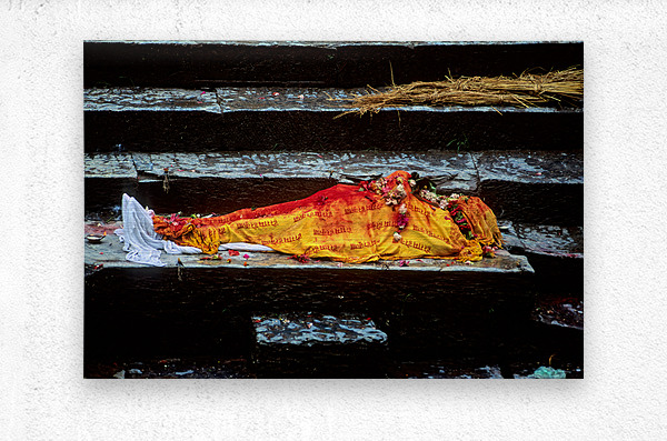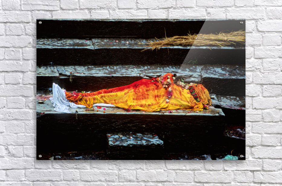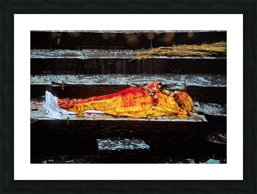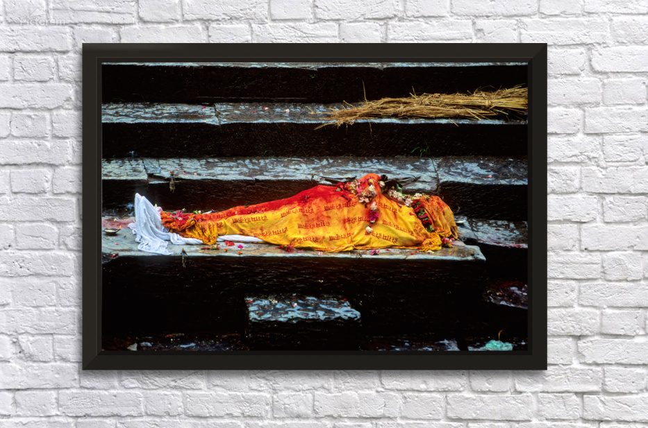 "Nepal. Kathmandu. Cremation in Pashupatinath" in a framed print.