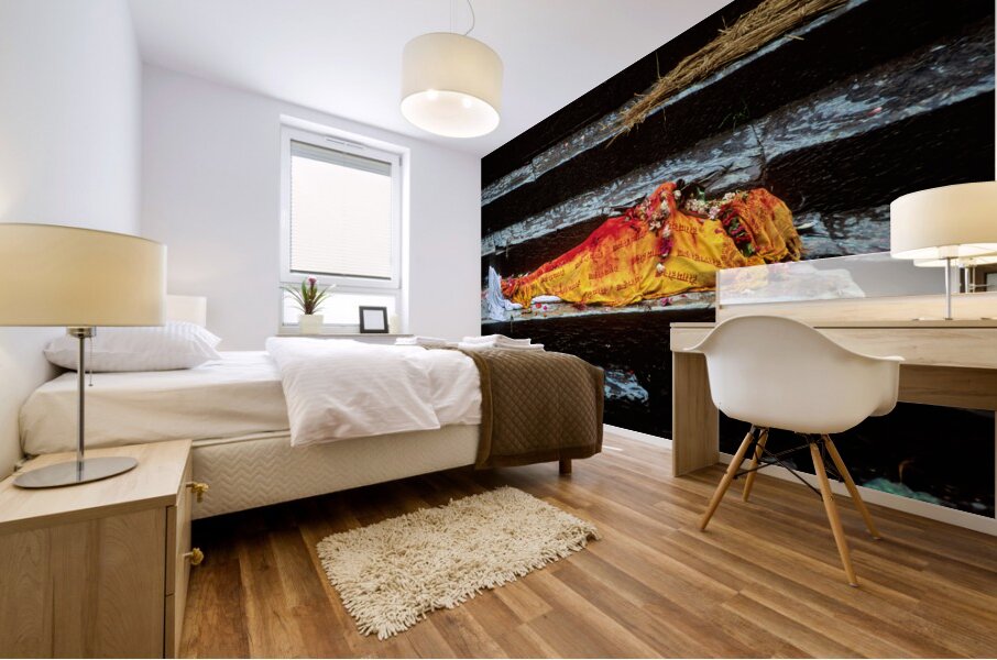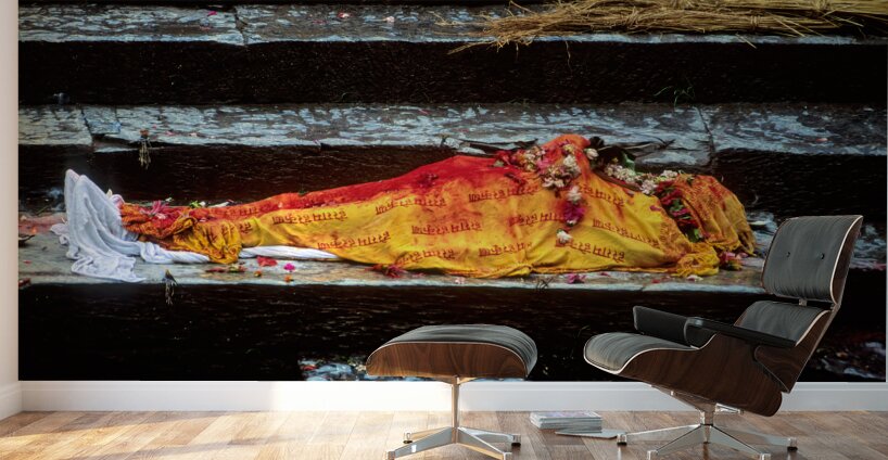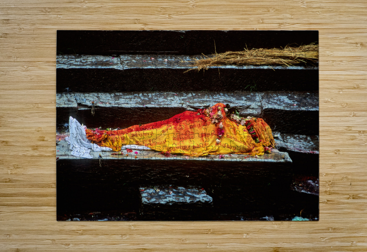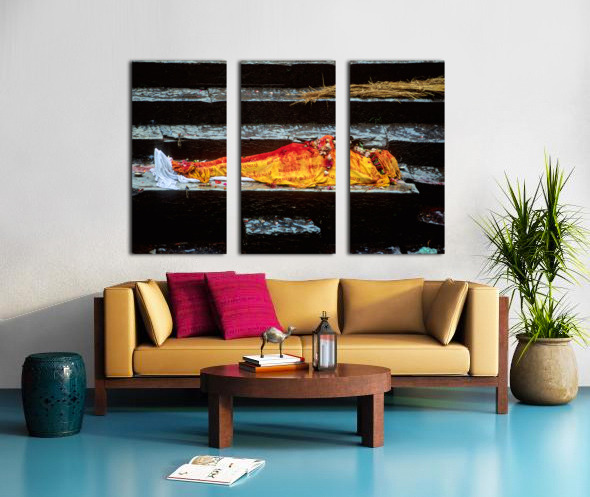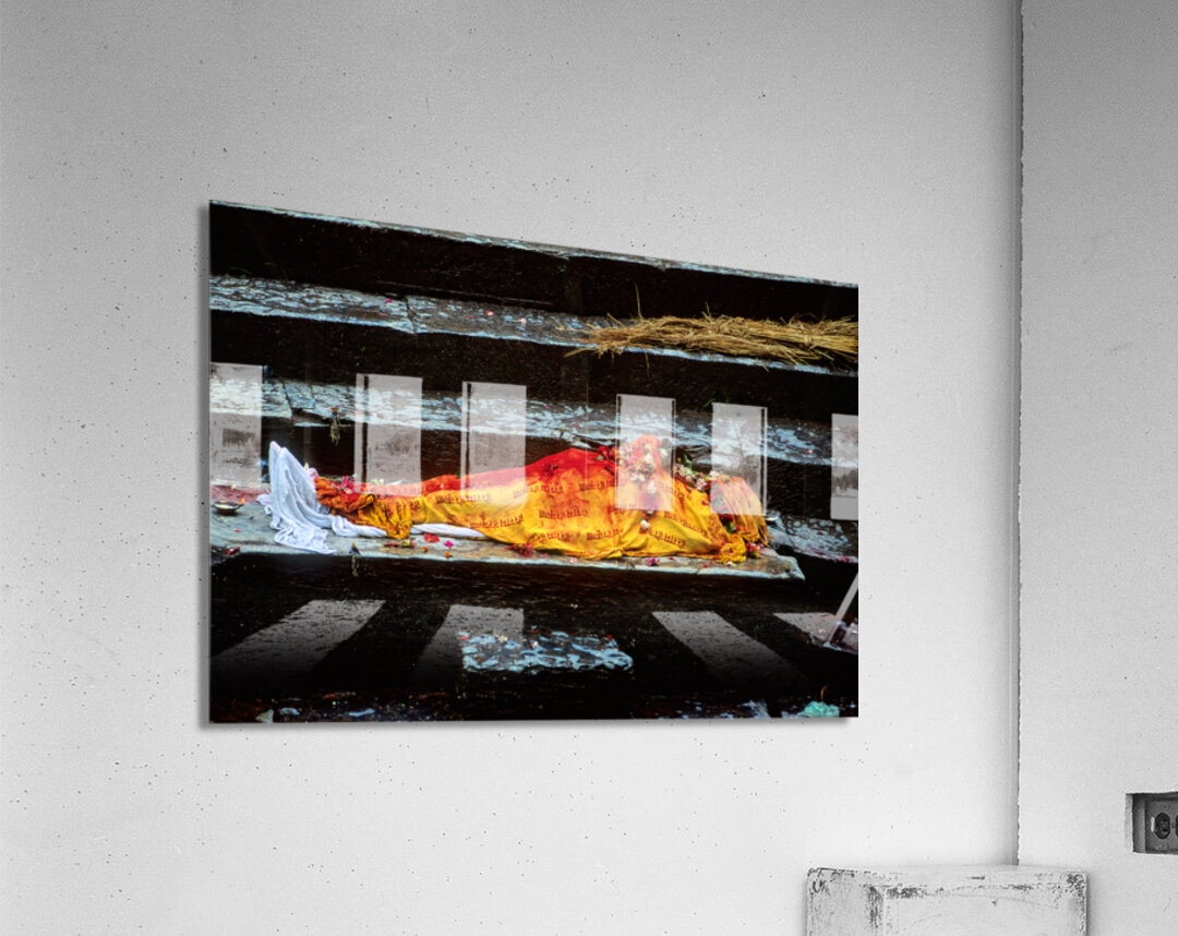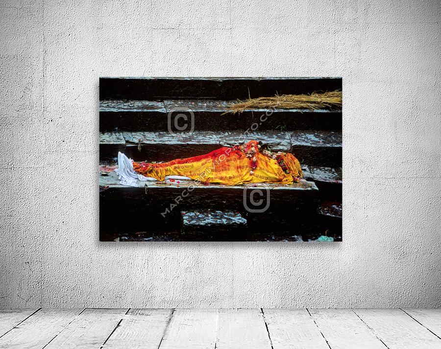 "Nepal. Kathmandu. Cremation in Pashupatinath" in a framed print.