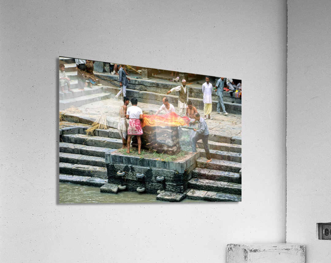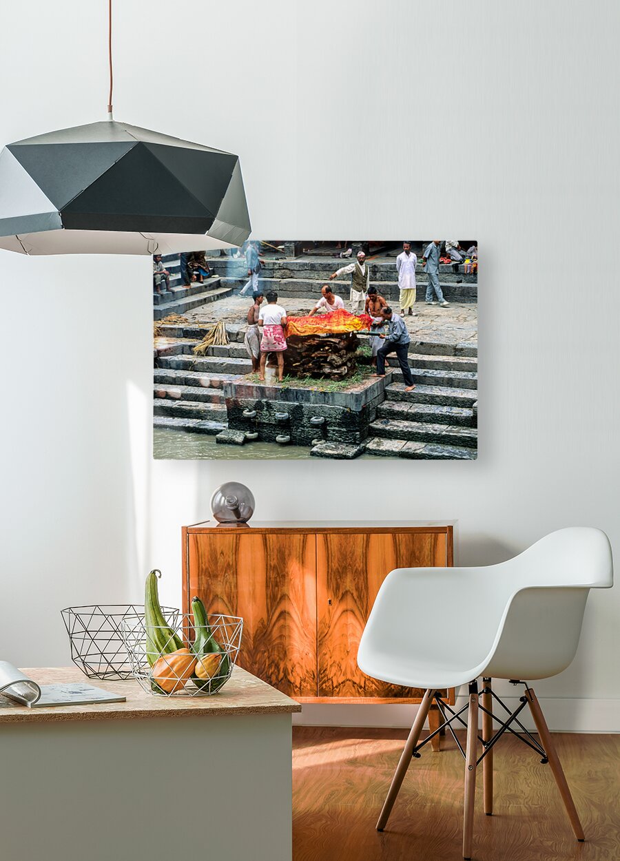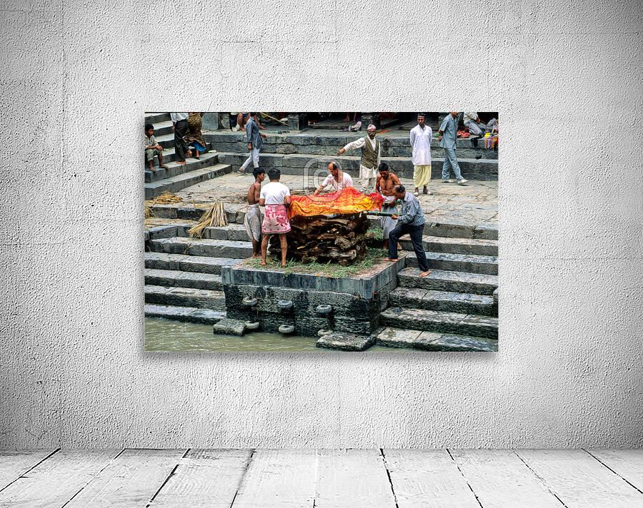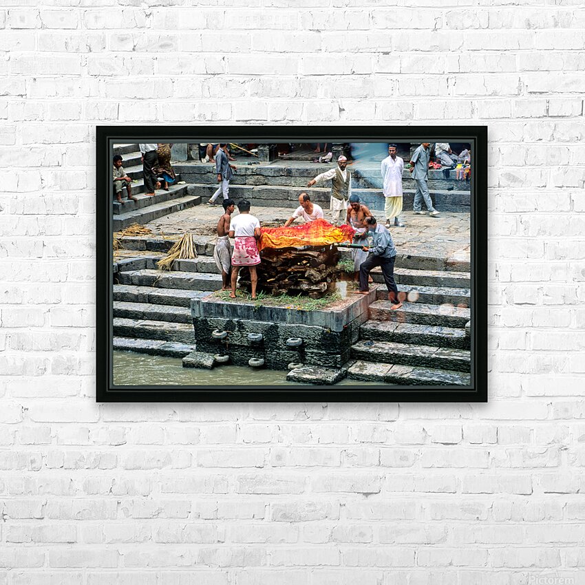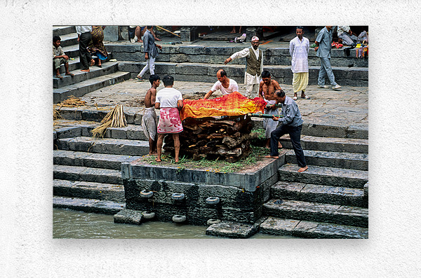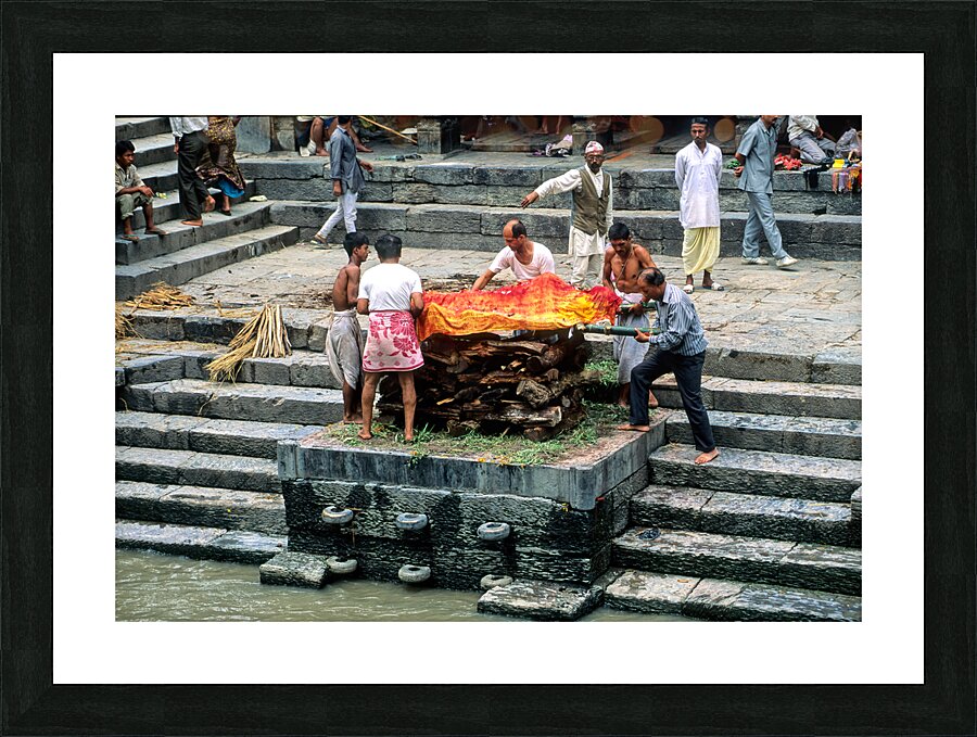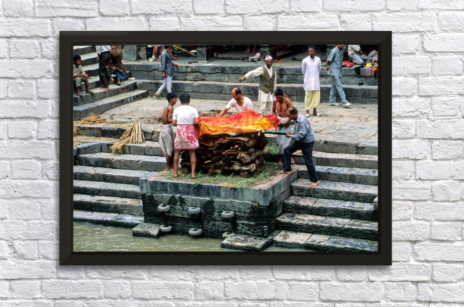 "Nepal. Kathmandu. Cremation in Pashupatinath" in a framed print.