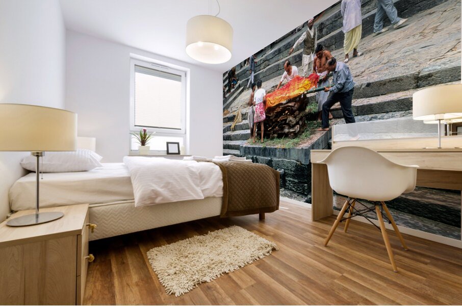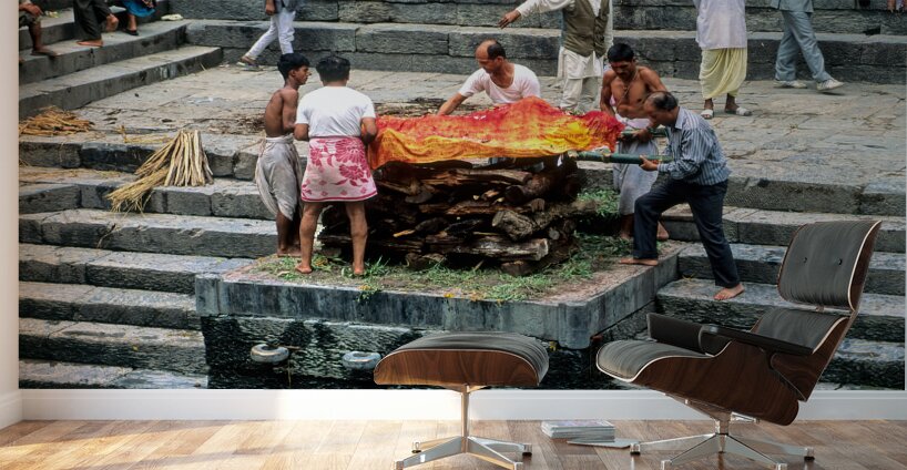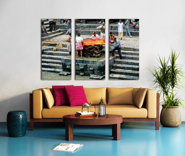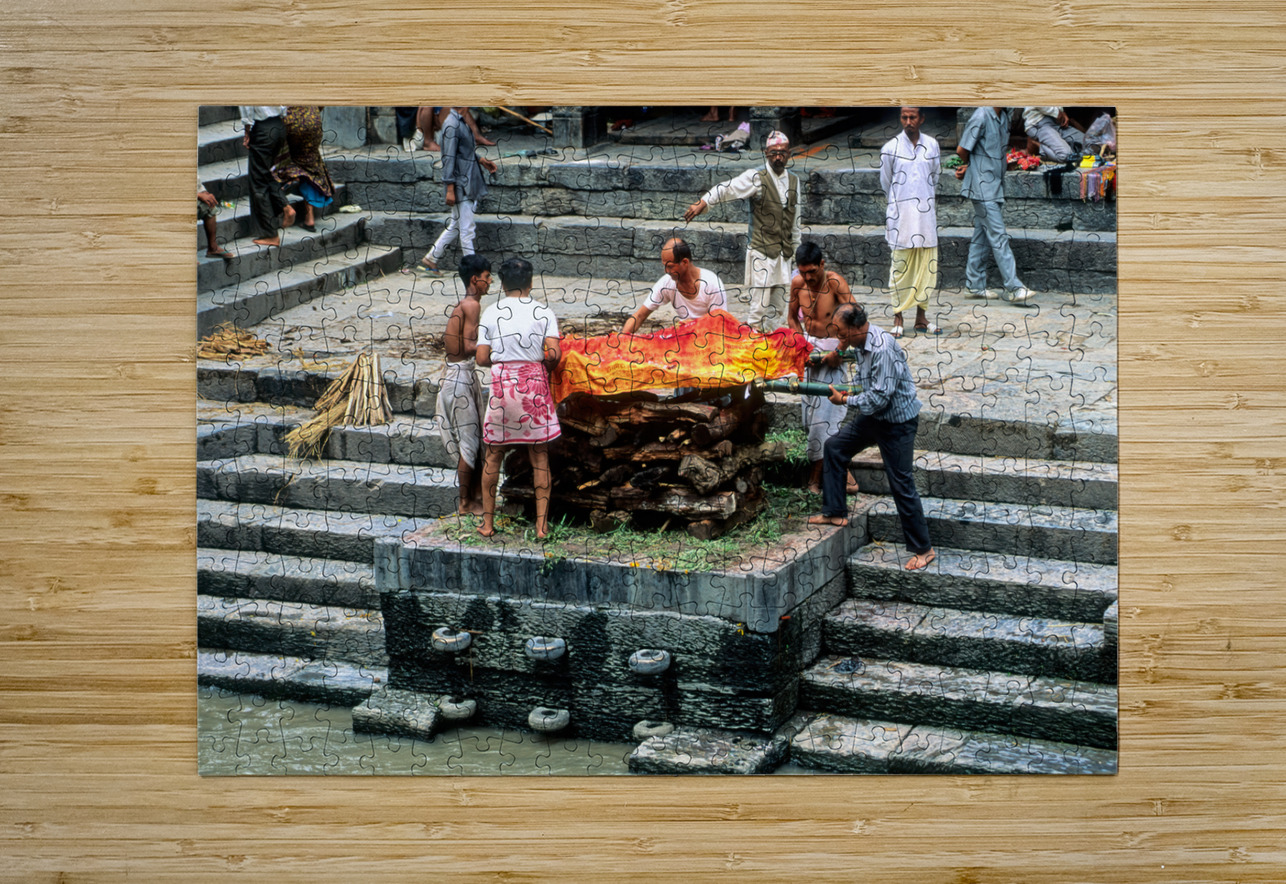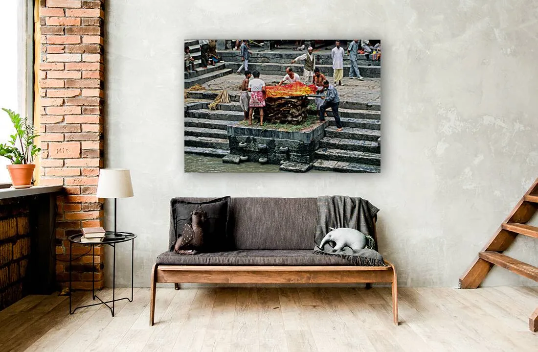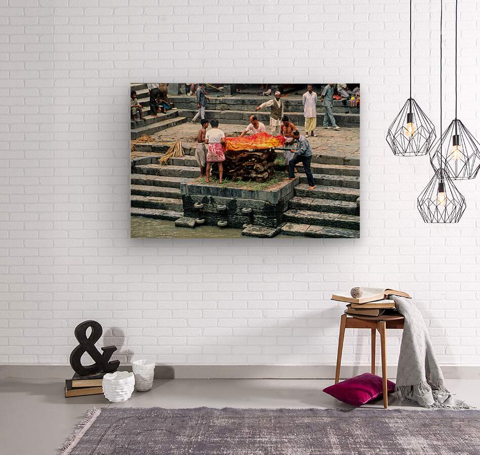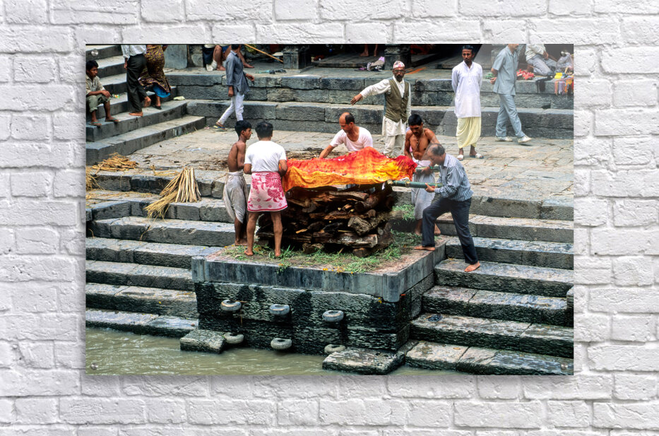 "Nepal. Kathmandu. Cremation in Pashupatinath" in a framed print.