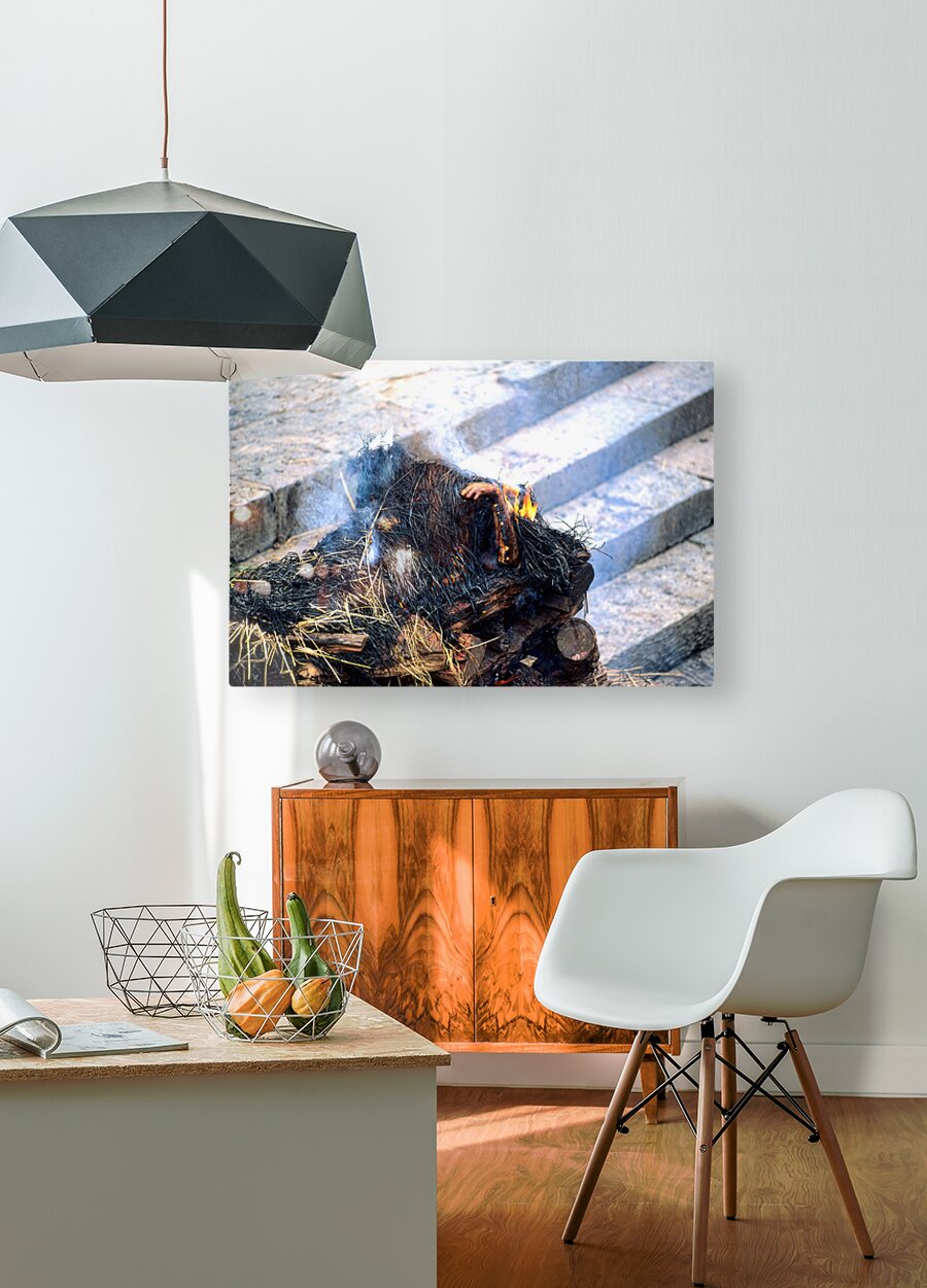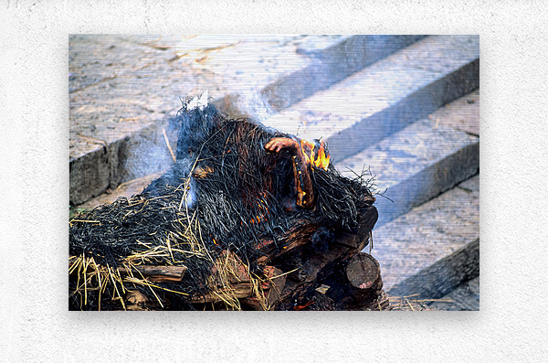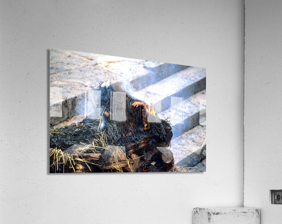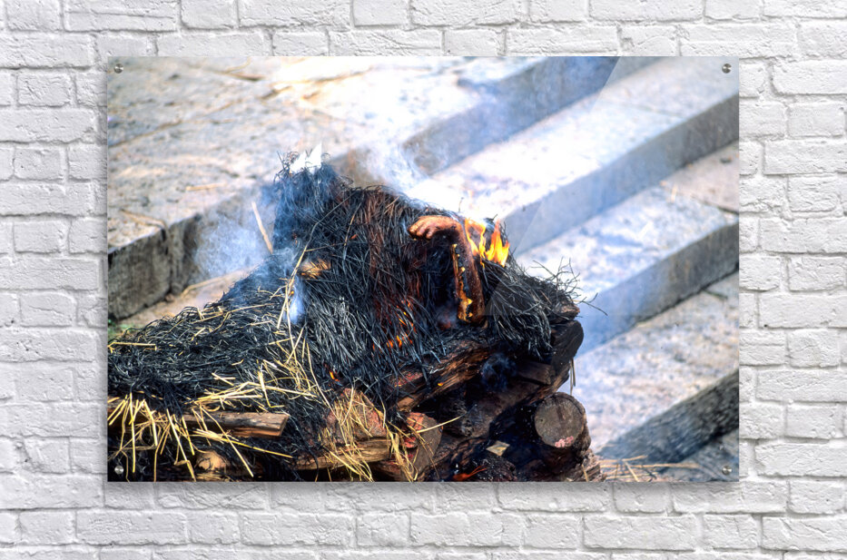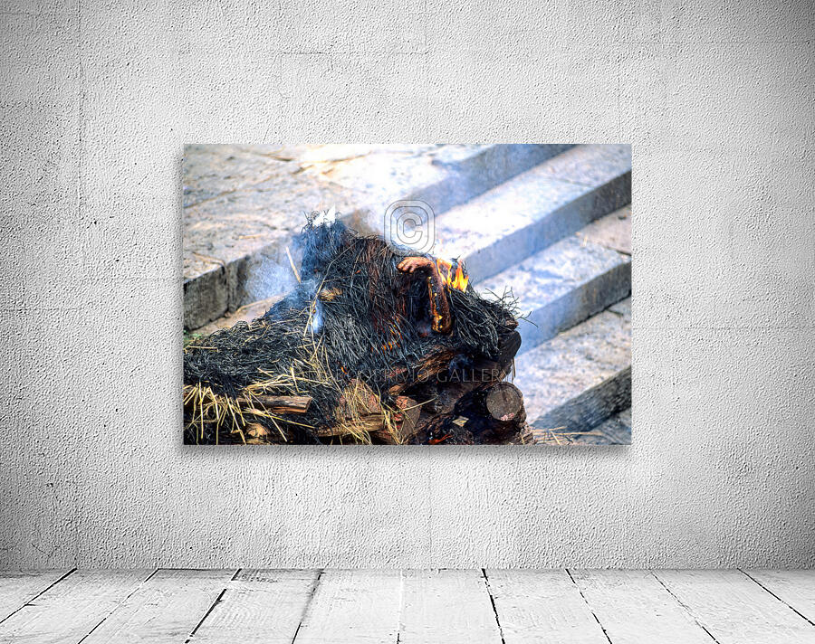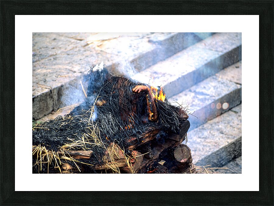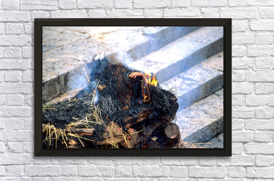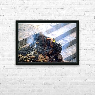 "Nepal. Kathmandu. Cremation in Pashupatinath" in a framed print.