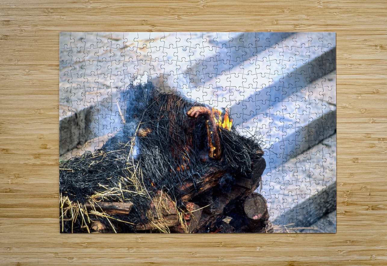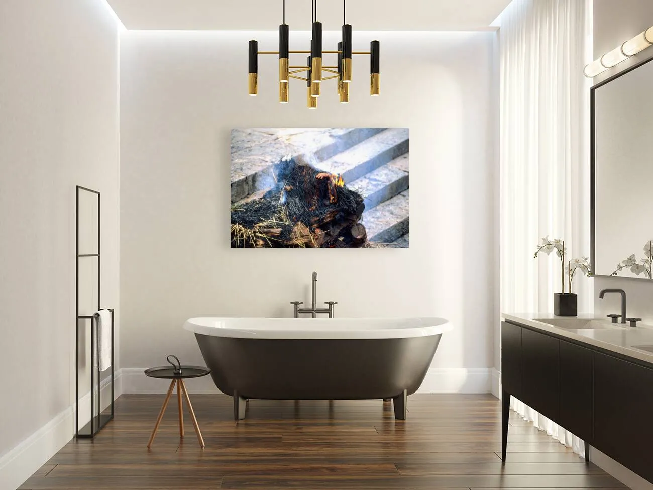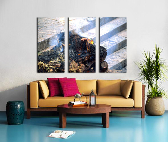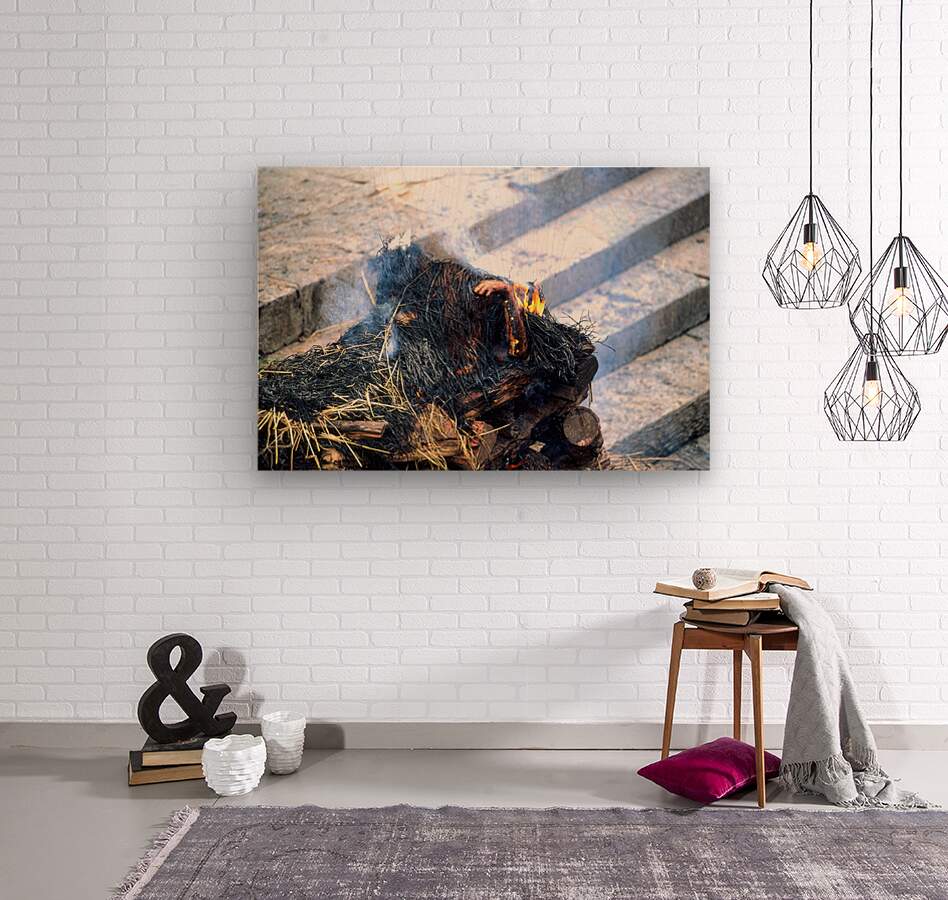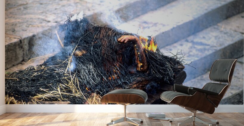 "Nepal. Kathmandu. Cremation in Pashupatinath" in a framed print.