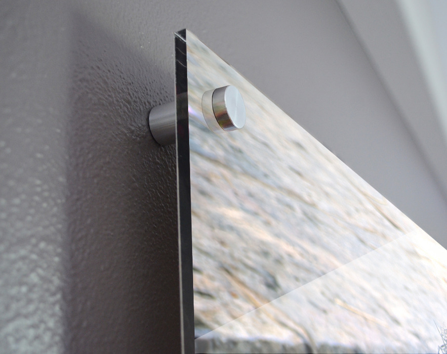 Printed to the edge - Ready to hang - provided with 4 premium polished aluminum stand off ( wall screws and mounting hardware provided )