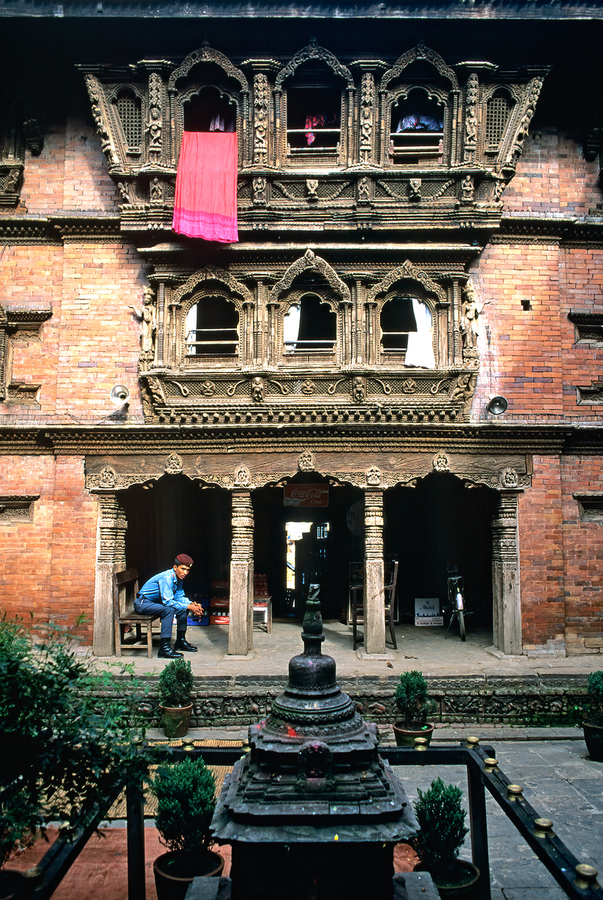 "Nepal. Kathmandu. Kumari goddess house" in a framed print.