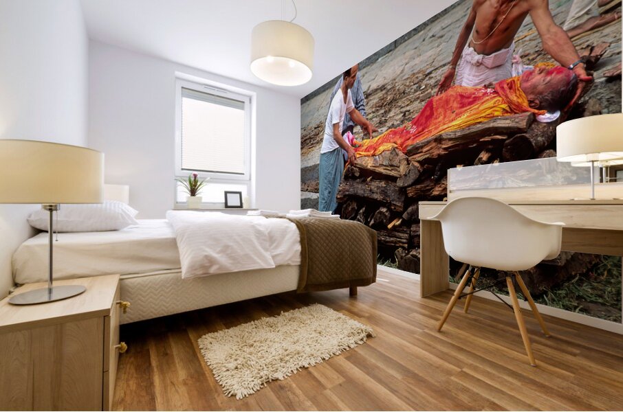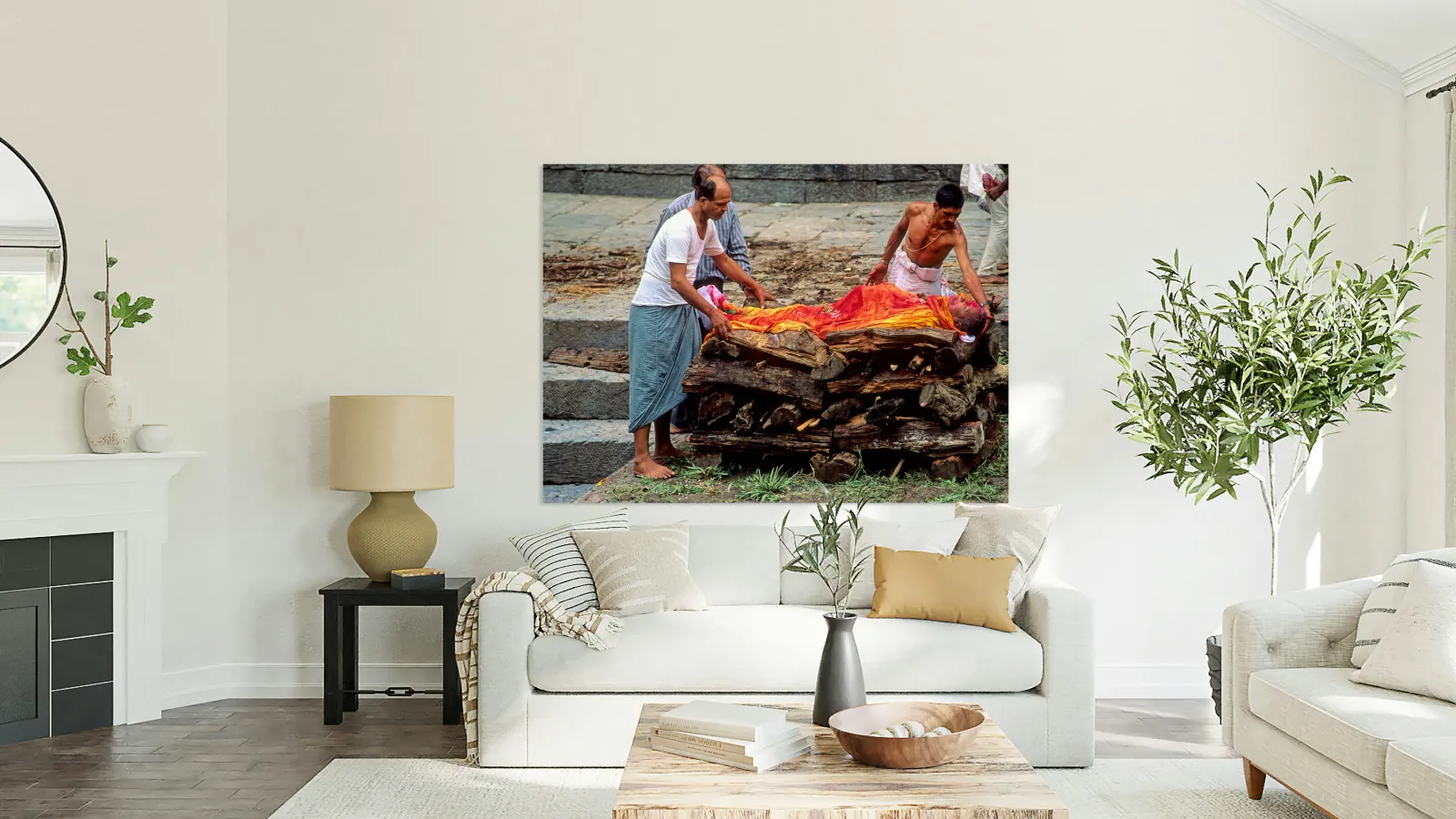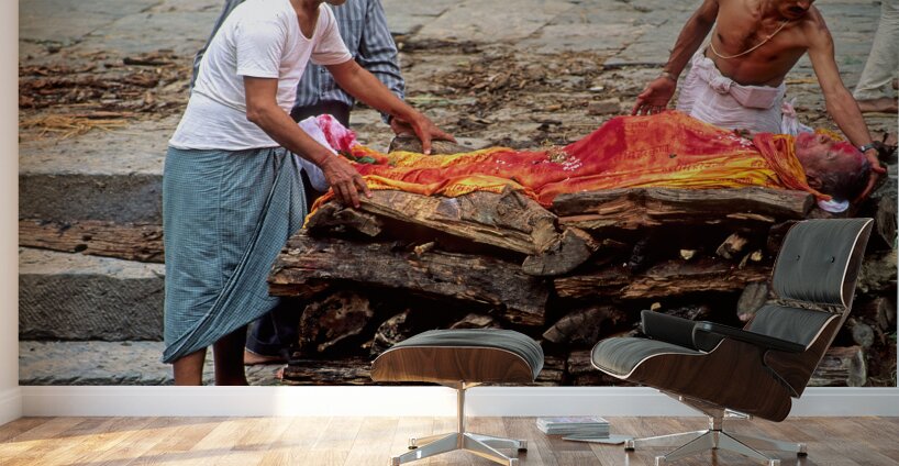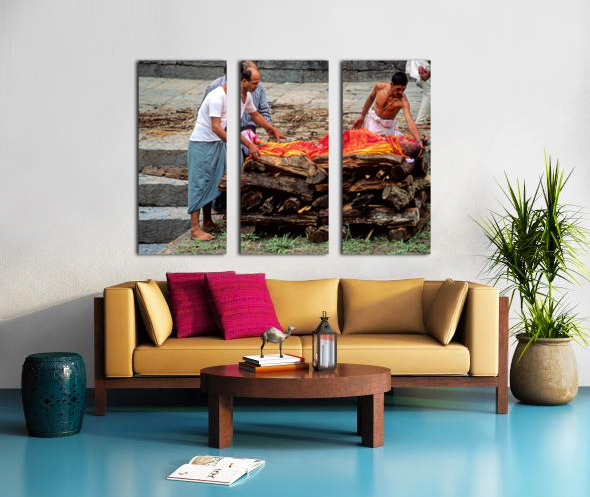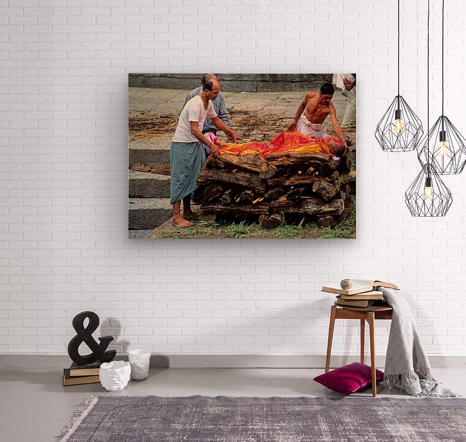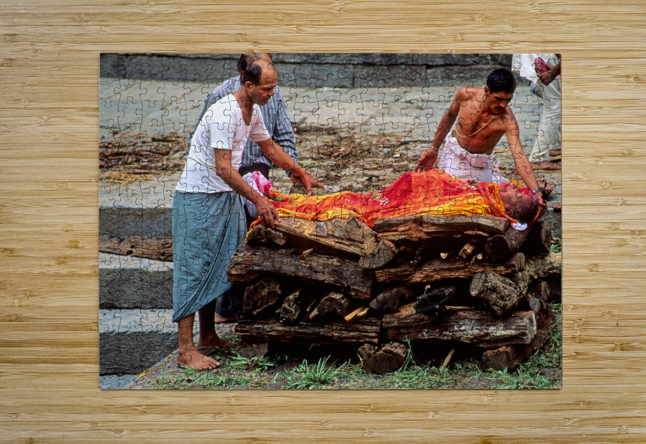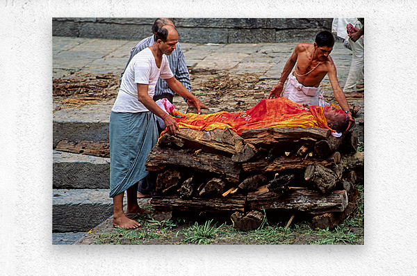 "Nepal. Kathmandu. Cremation in Pashupatinath" in a framed print.