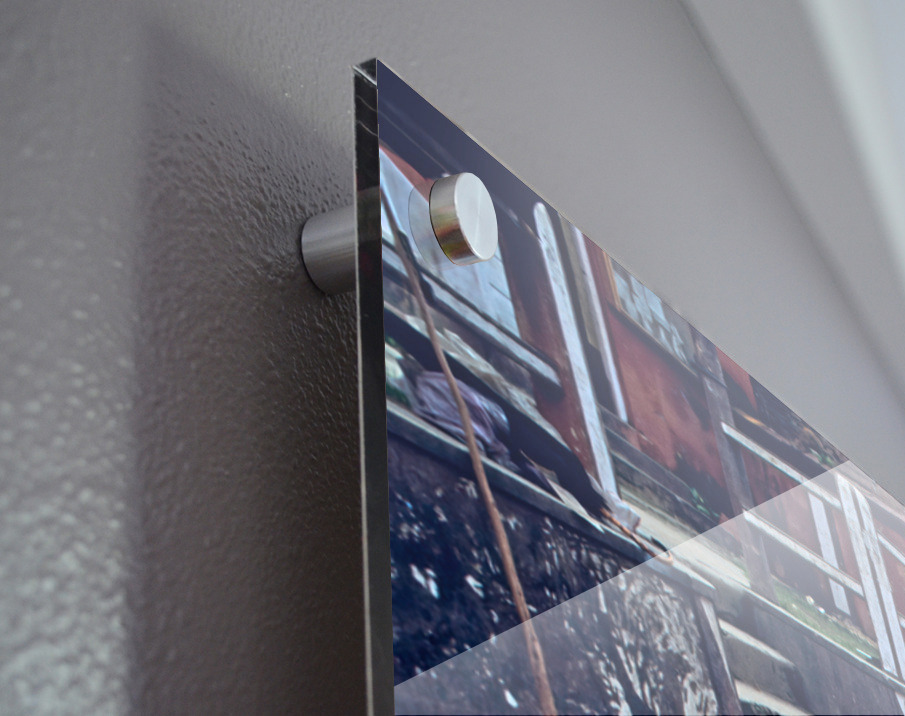 Printed to the edge - Ready to hang - provided with 4 premium polished aluminum stand off ( wall screws and mounting hardware provided )