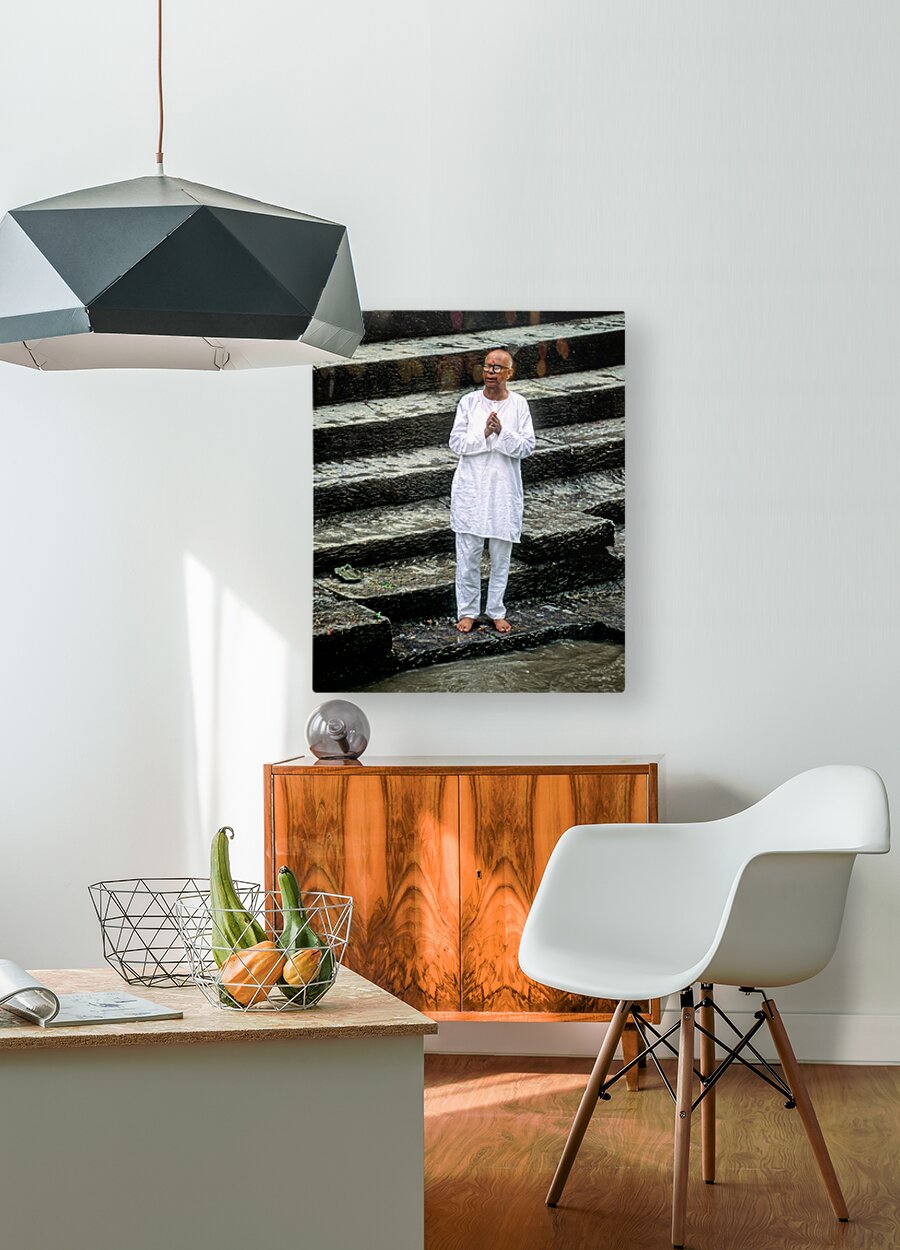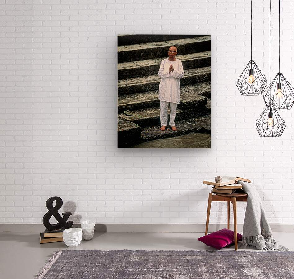 Nepal. Kathmandu. A pilgrim in Pashupatinath  Wood print