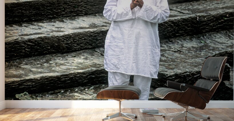 Nepal. Kathmandu. A pilgrim in Pashupatinath Wood print