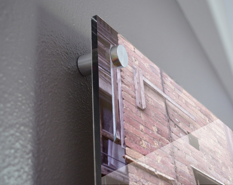 Printed to the edge - Ready to hang - provided with 4 premium polished aluminum stand off ( wall screws and mounting hardware provided )