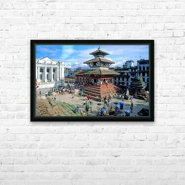 "Nepal. Kathmandu. Durbar Square" in a framed print.