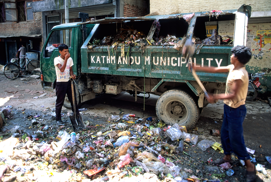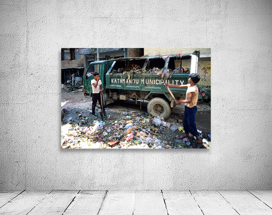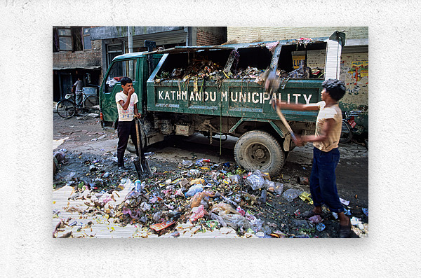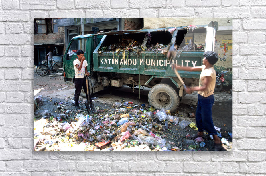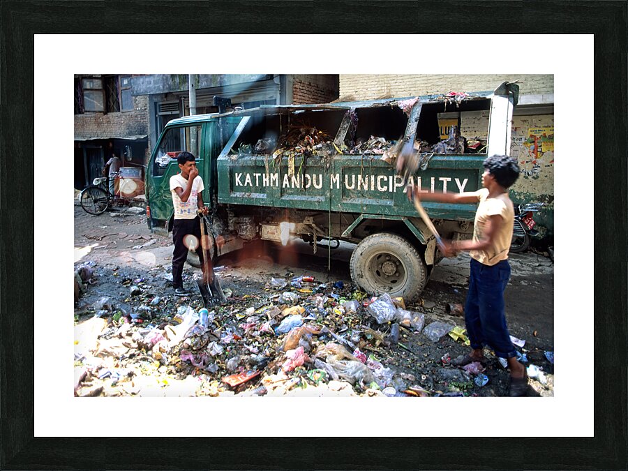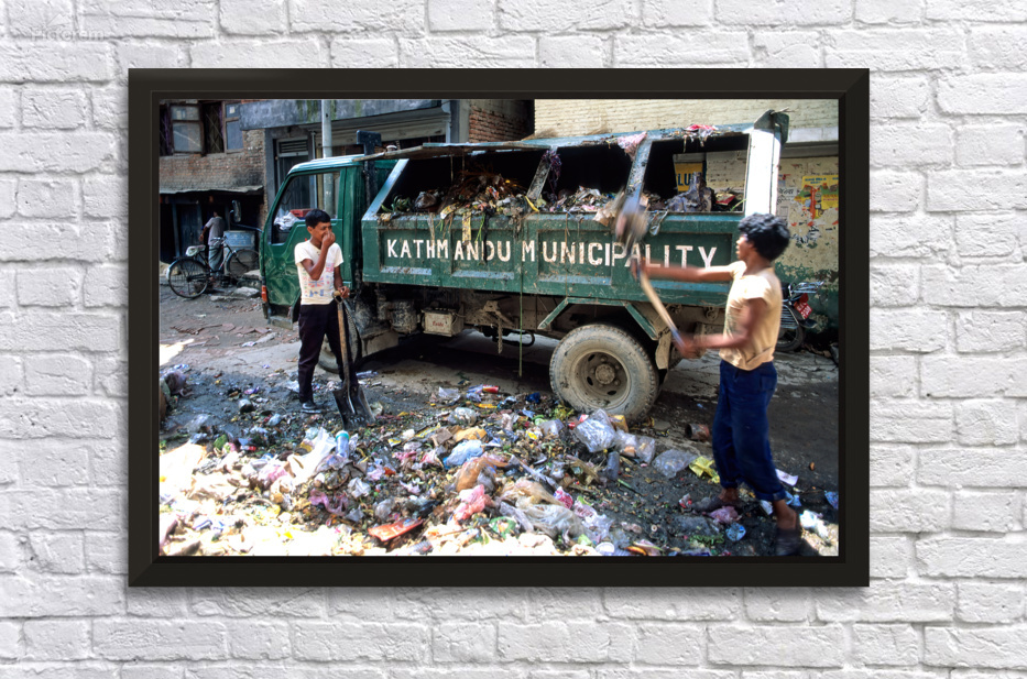 "Nepal. Kathmandu. Dustmen" in a framed print.