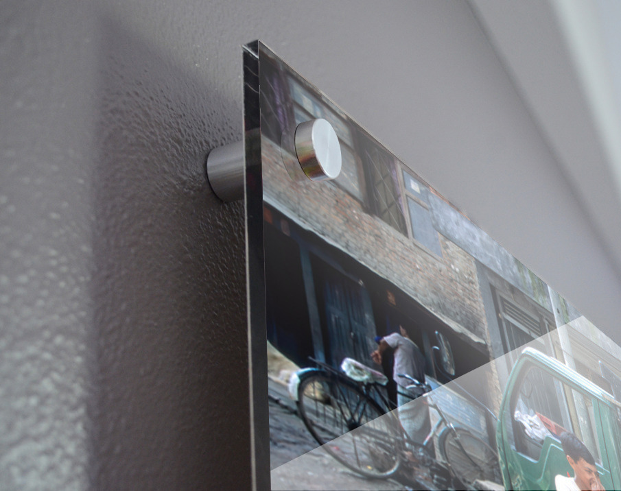 Printed to the edge - Ready to hang - provided with 4 premium polished aluminum stand off ( wall screws and mounting hardware provided )