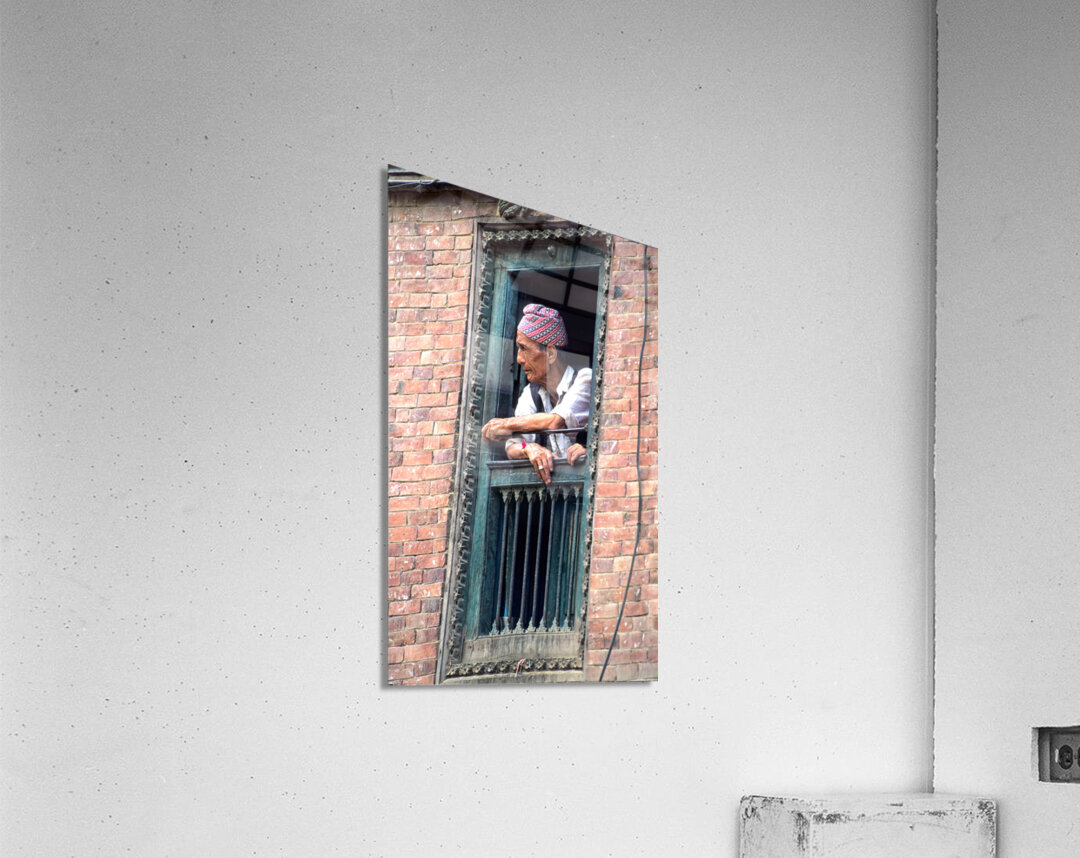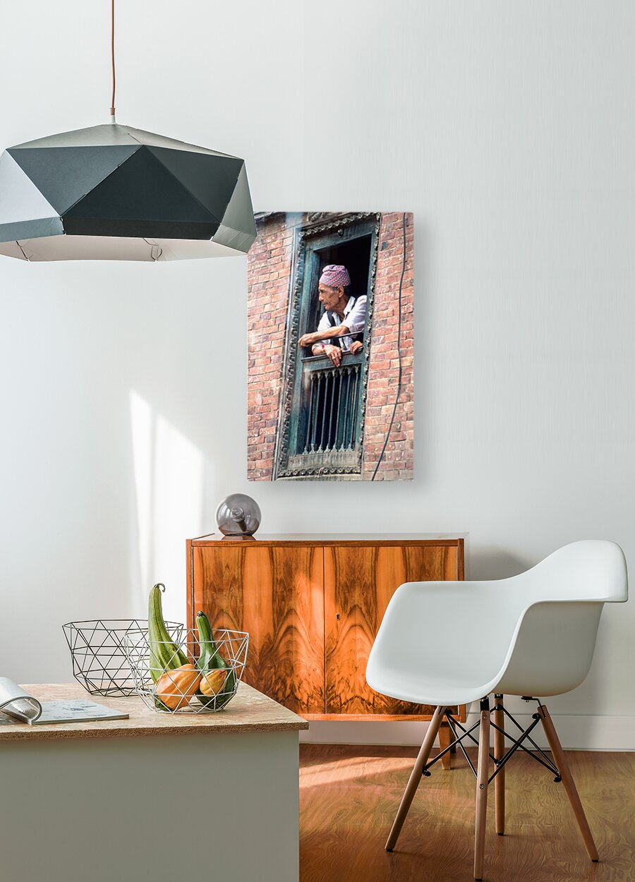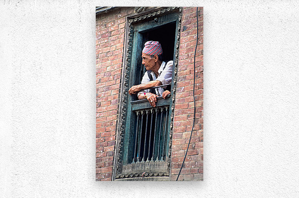 Nepal. Kathmandu. Man at a window  Wood print