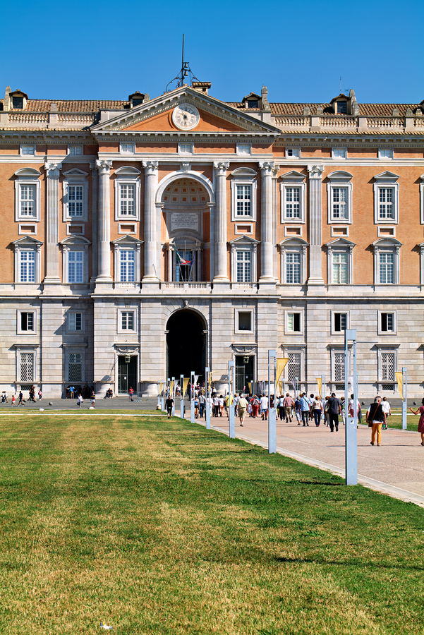 Caserta Campania Italy. The Royal Palace. Visitors approaching the entrance