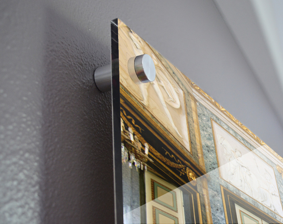 Printed to the edge - Ready to hang - provided with 4 premium polished aluminum stand off ( wall screws and mounting hardware provided )