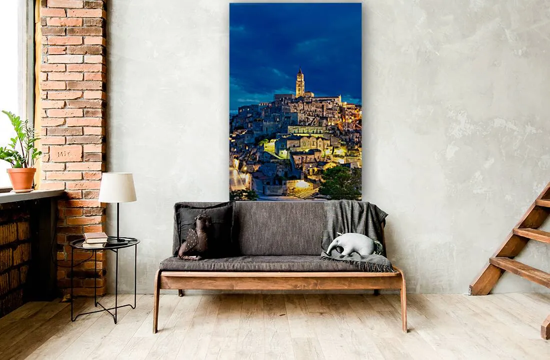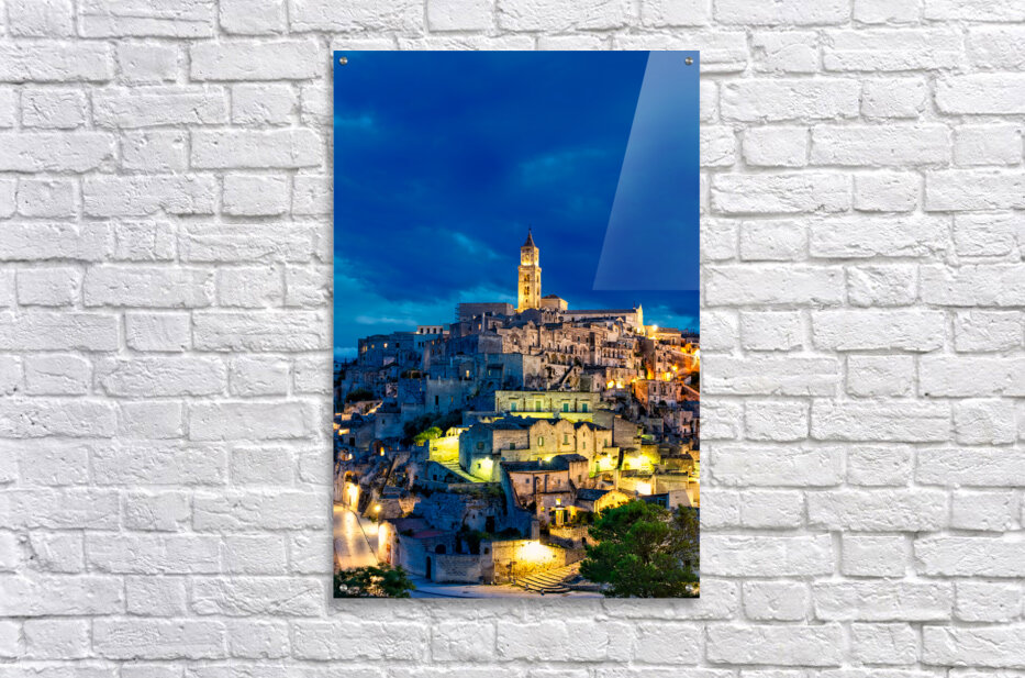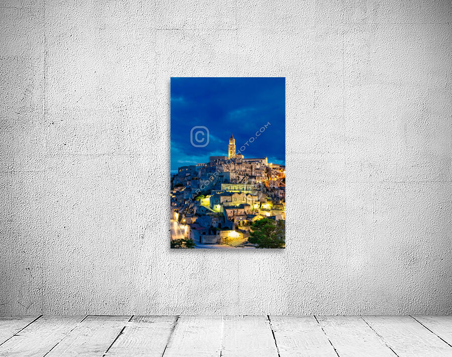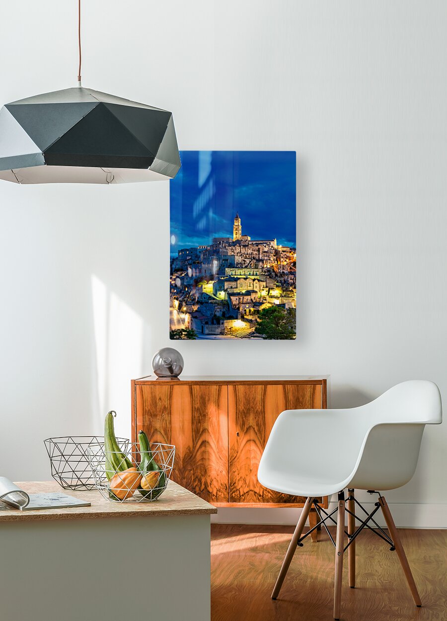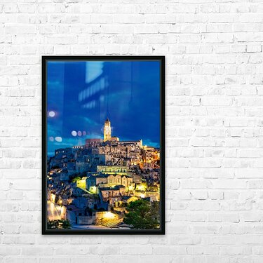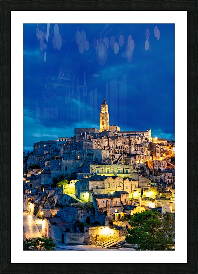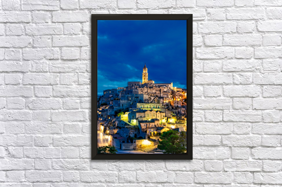 "Matera Basilicata Italy. Cityscape. I sassi di Matera at sunset" in a framed print.