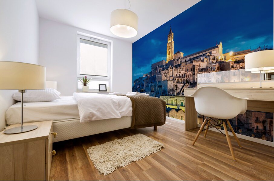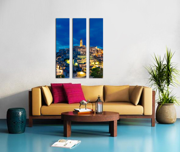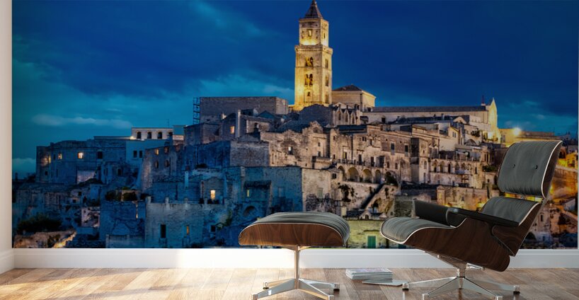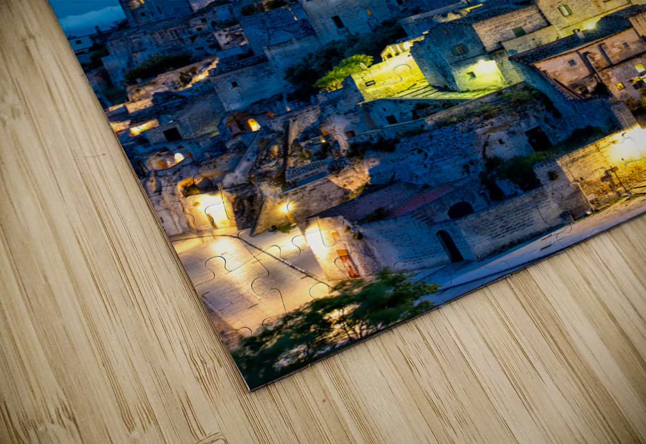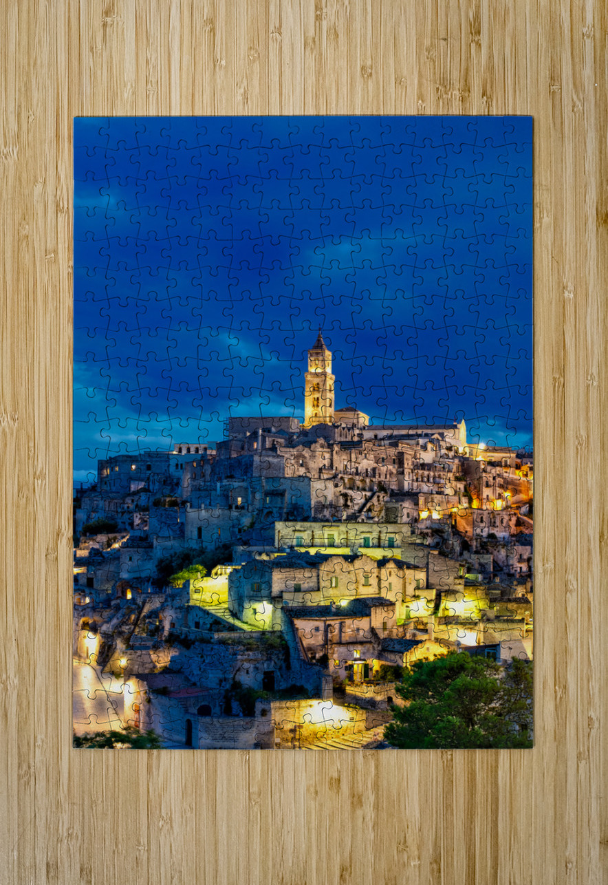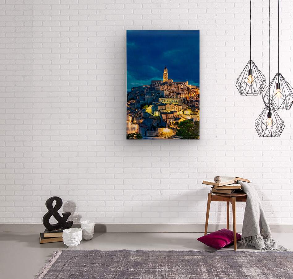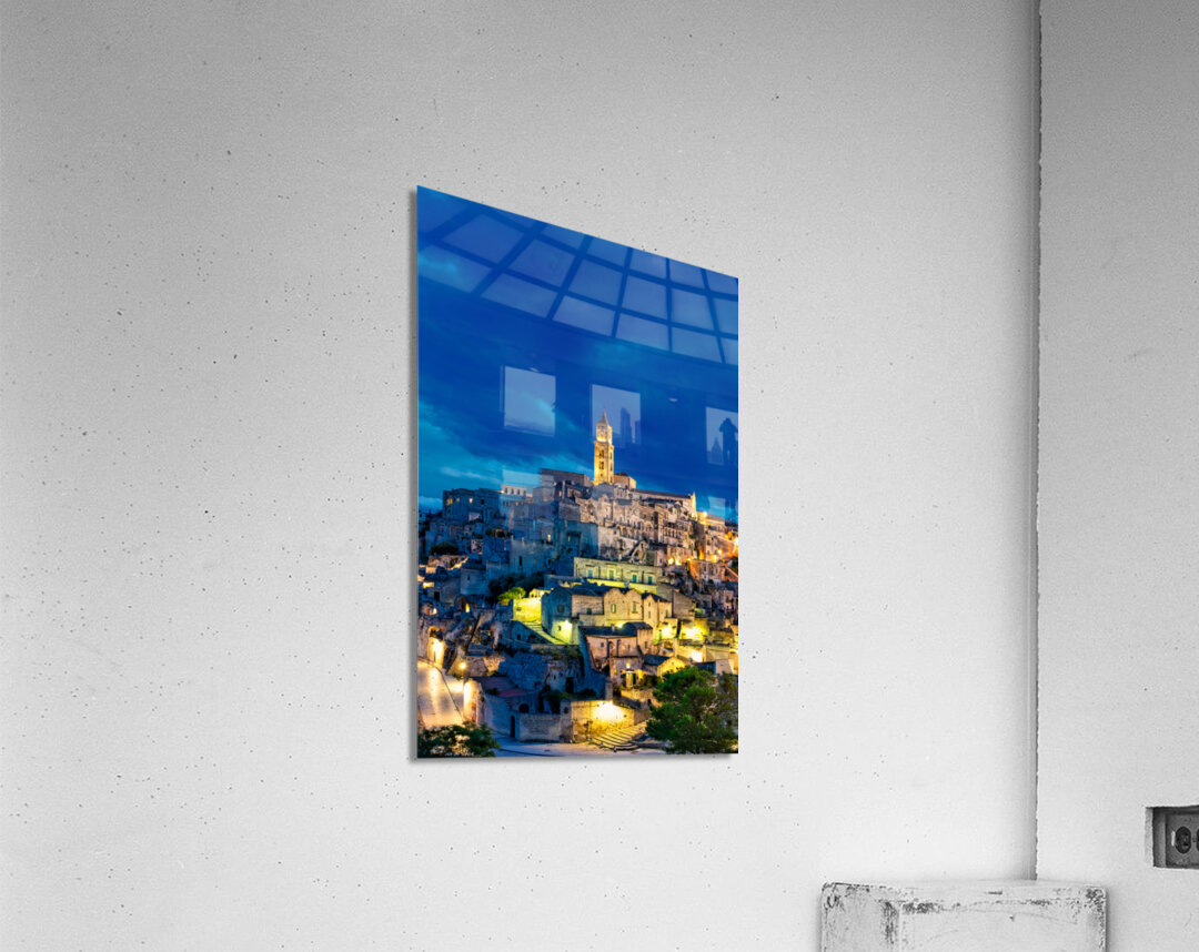 "Matera Basilicata Italy. Cityscape. I sassi di Matera at sunset" in a framed print.