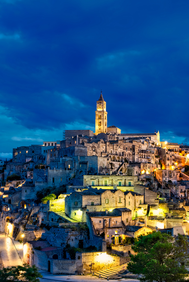 Matera Basilicata Italy. Cityscape. I sassi di Matera at sunset