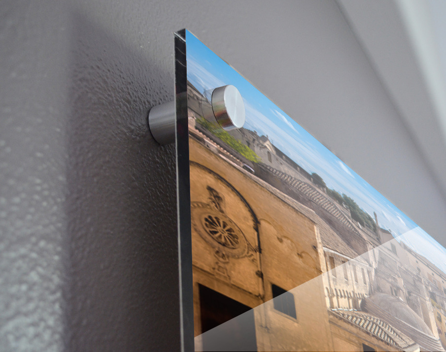 Printed to the edge - Ready to hang - provided with 4 premium polished aluminum stand off ( wall screws and mounting hardware provided )