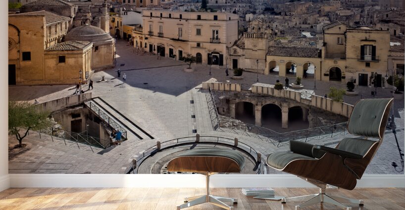 Matera Basilicata Italy. High angle view of Piazza Vittorio Veneto
