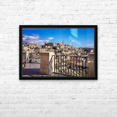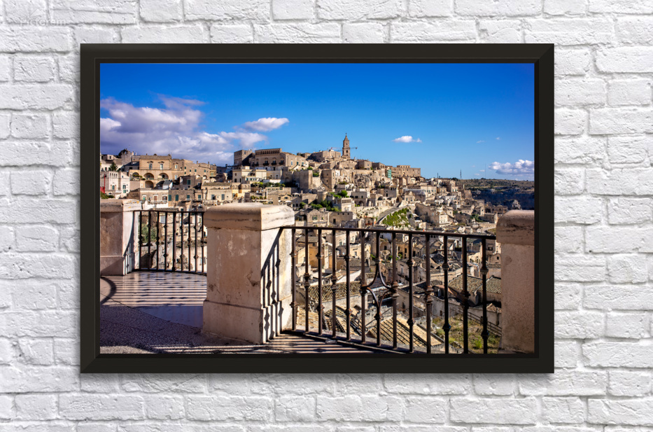 "Matera Basilicata Italy. Cityscape. I sassi di Matera" in a framed print.