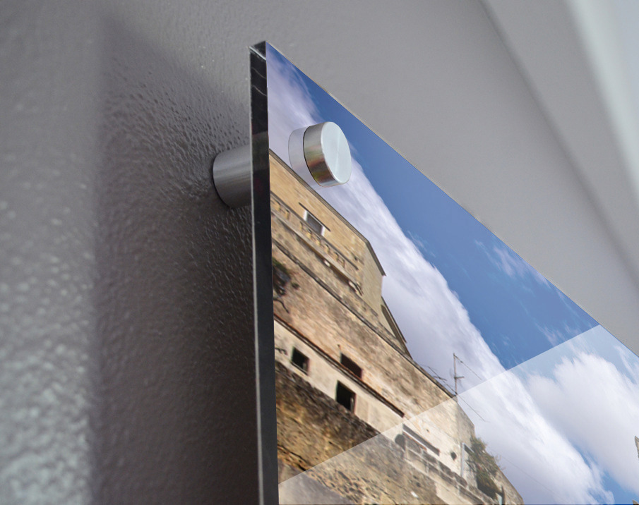 Printed to the edge - Ready to hang - provided with 4 premium polished aluminum stand off ( wall screws and mounting hardware provided )