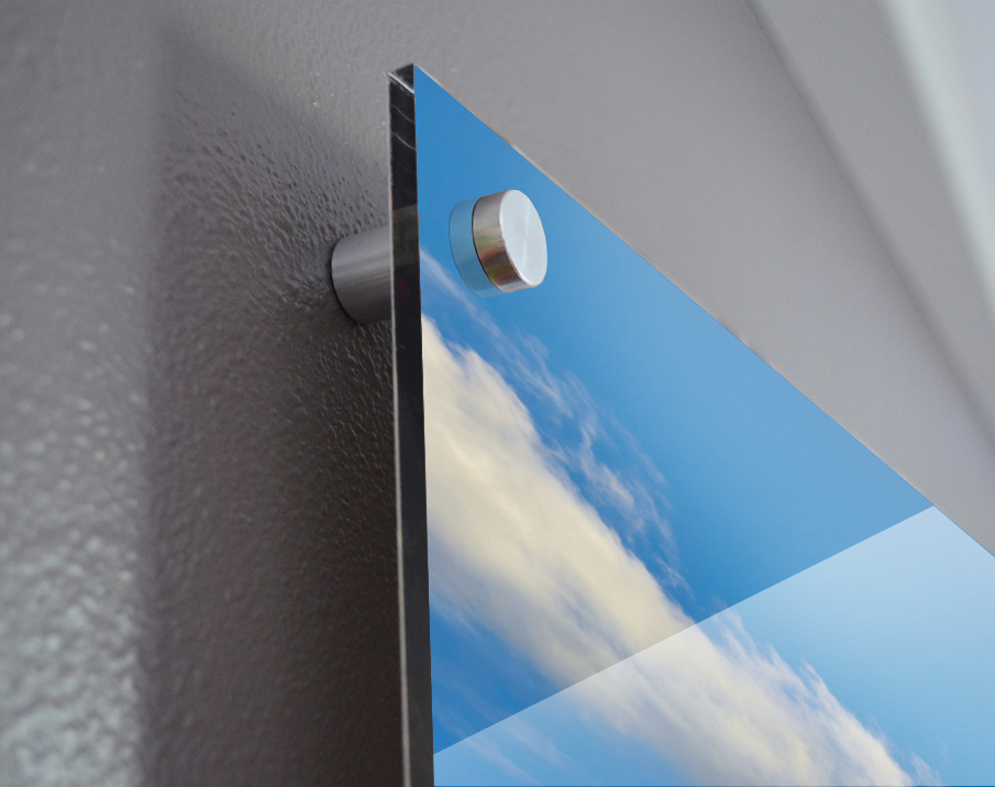 Printed to the edge - Ready to hang - provided with 4 premium polished aluminum stand off ( wall screws and mounting hardware provided )