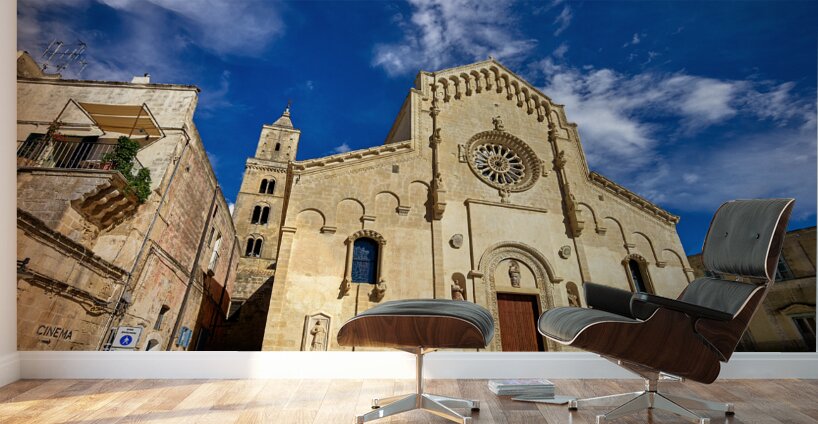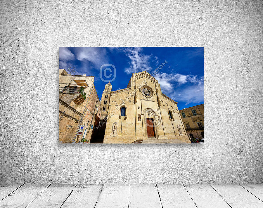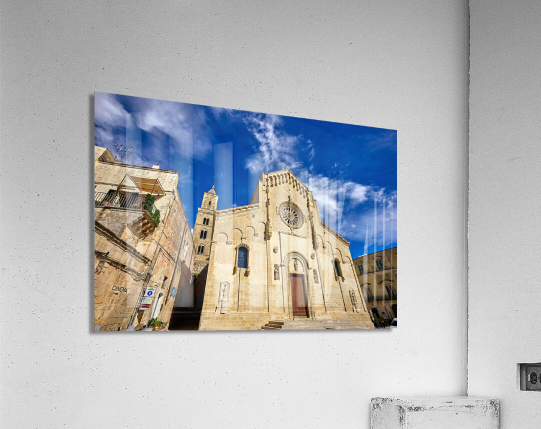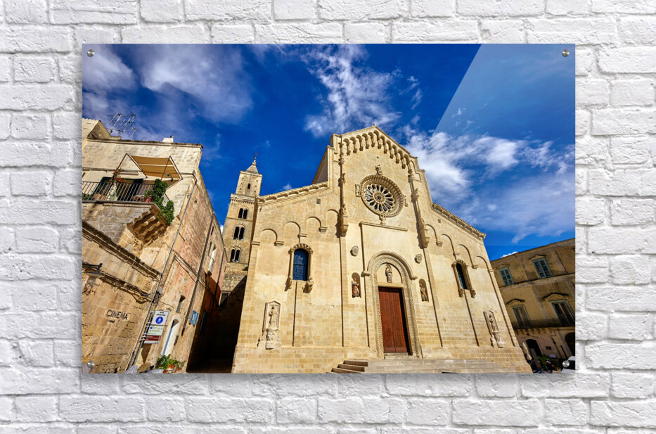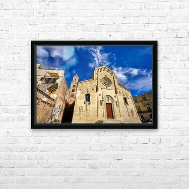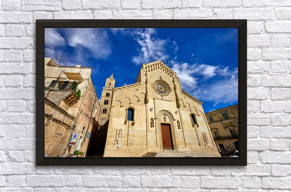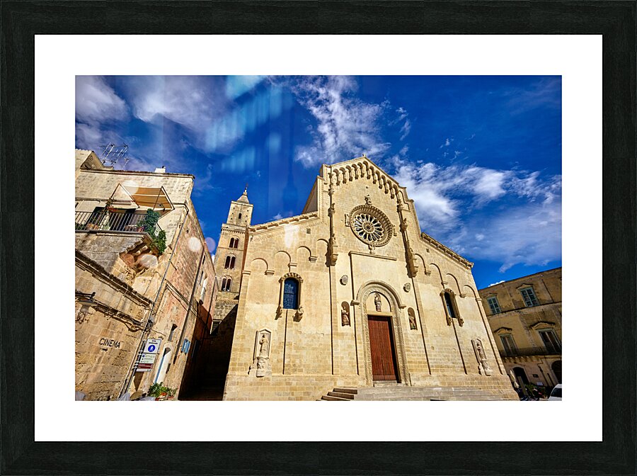 "Matera Basilicata Italy. Basilica Pontificia Cattedrale di Maria Santissima della Bruna e SantEustachio" in a framed print.