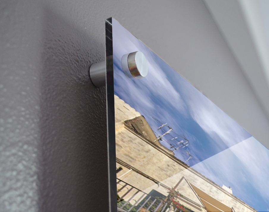 Printed to the edge - Ready to hang - provided with 4 premium polished aluminum stand off ( wall screws and mounting hardware provided )