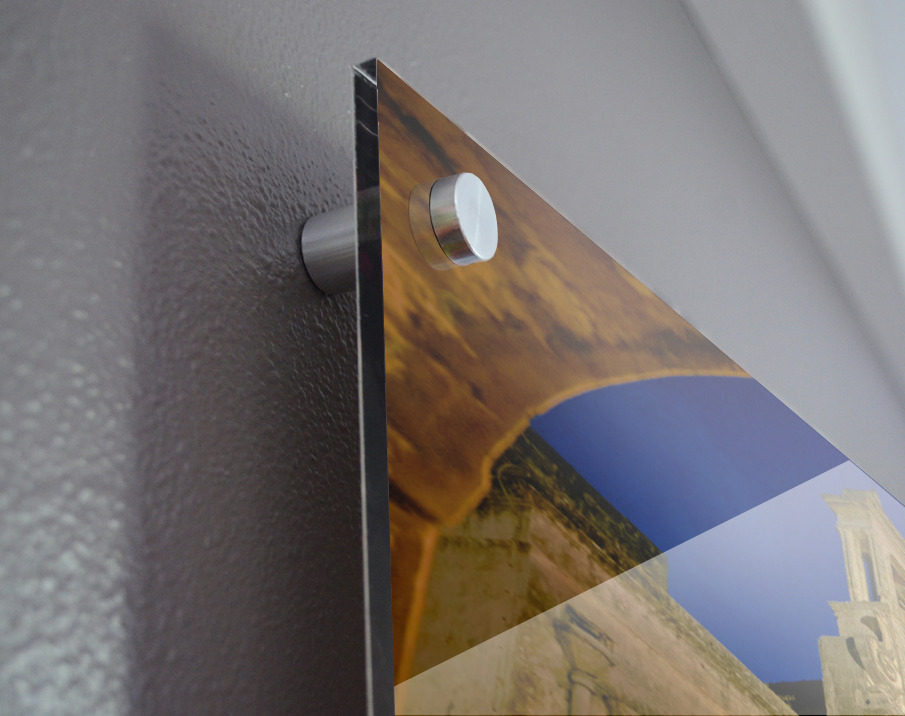 Printed to the edge - Ready to hang - provided with 4 premium polished aluminum stand off ( wall screws and mounting hardware provided )