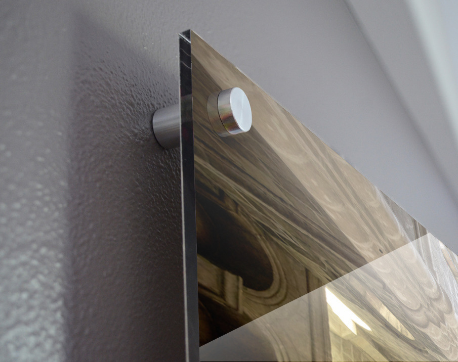 Printed to the edge - Ready to hang - provided with 4 premium polished aluminum stand off ( wall screws and mounting hardware provided )