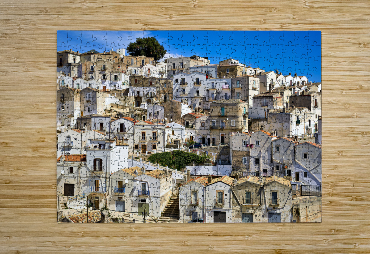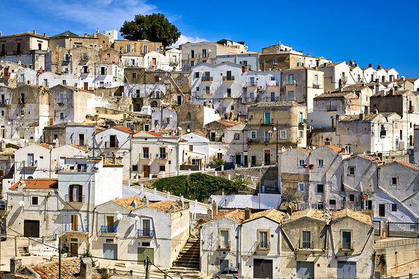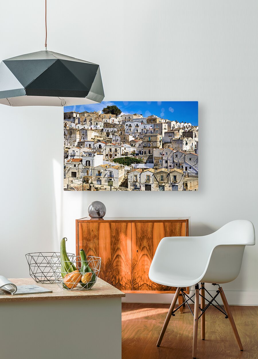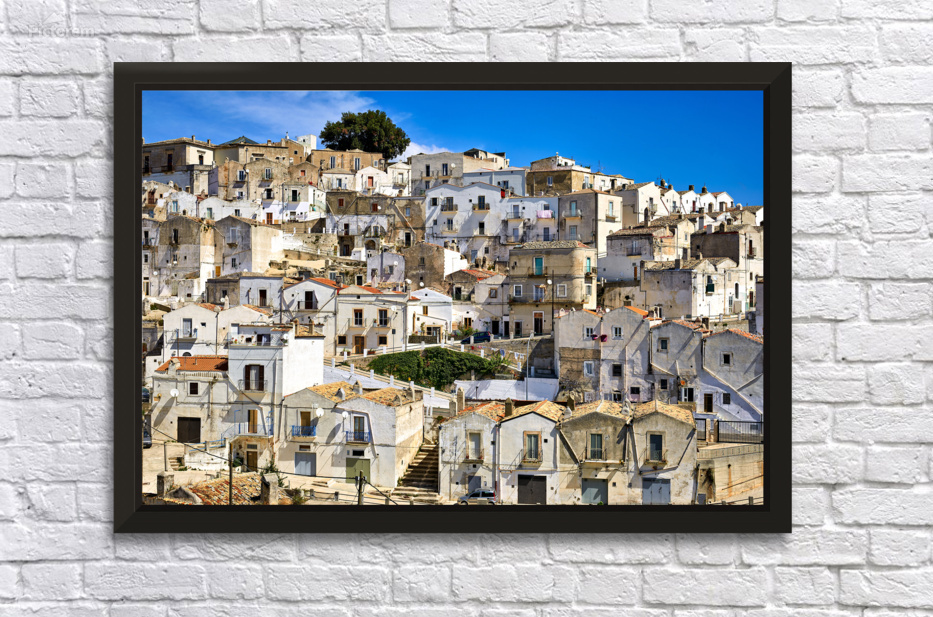 "Apulia Puglia Gargano Italy. Monte SantAngelo townscape" in a framed print.