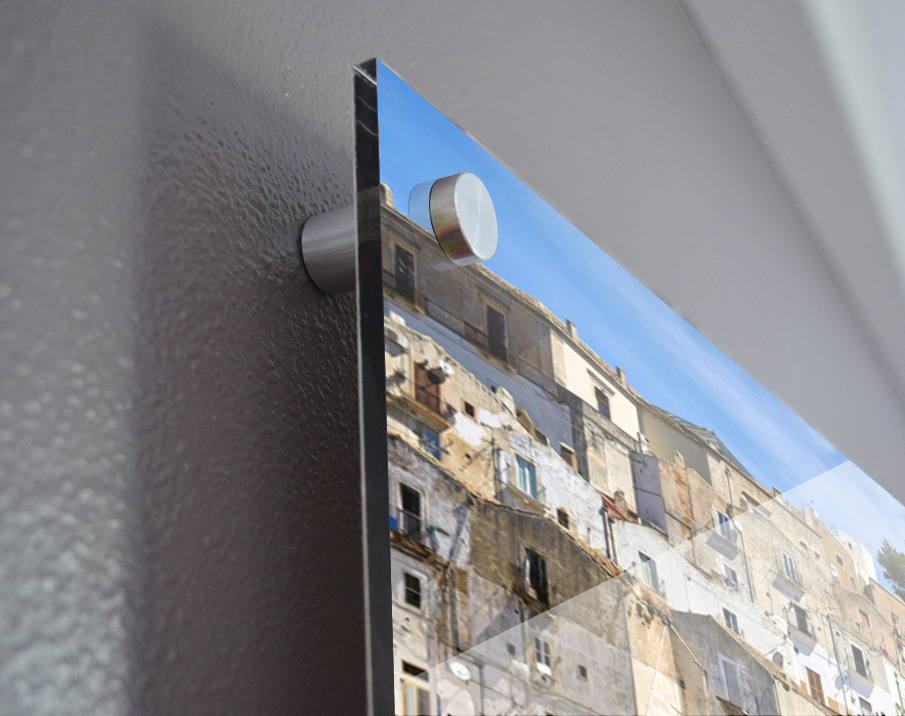 Printed to the edge - Ready to hang - provided with 4 premium polished aluminum stand off ( wall screws and mounting hardware provided )