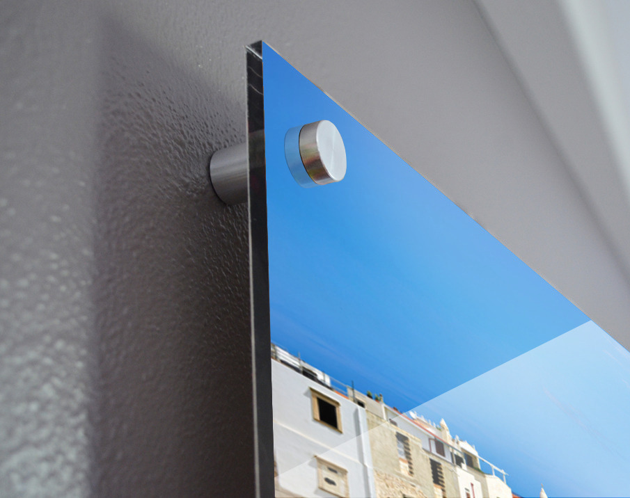 Printed to the edge - Ready to hang - provided with 4 premium polished aluminum stand off ( wall screws and mounting hardware provided )