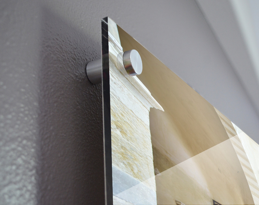 Printed to the edge - Ready to hang - provided with 4 premium polished aluminum stand off ( wall screws and mounting hardware provided )