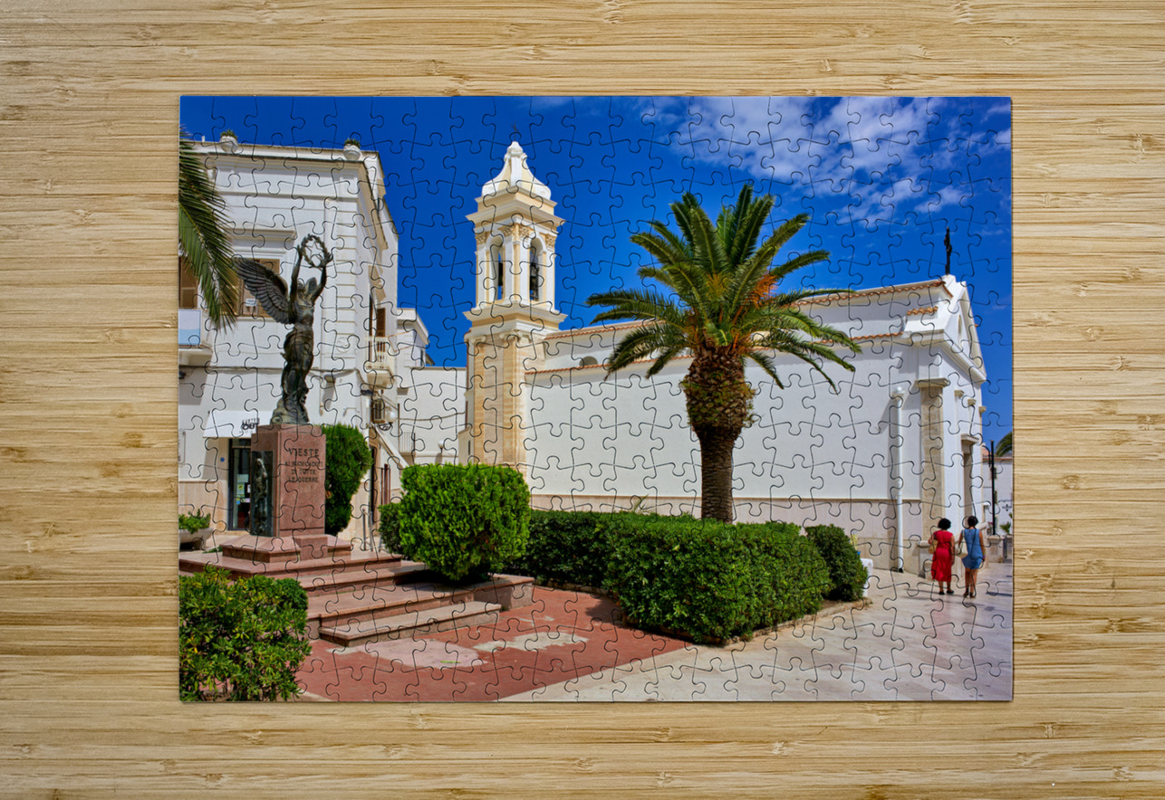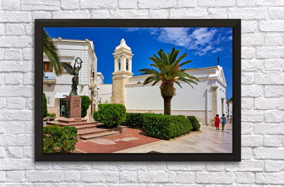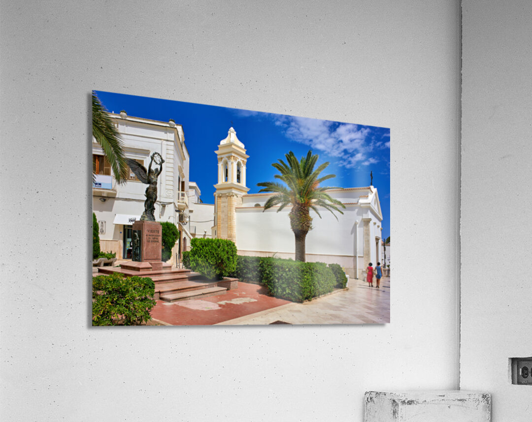 Vieste Gargano. Apulia Puglia Italy. Santa Croce church and bronze statue