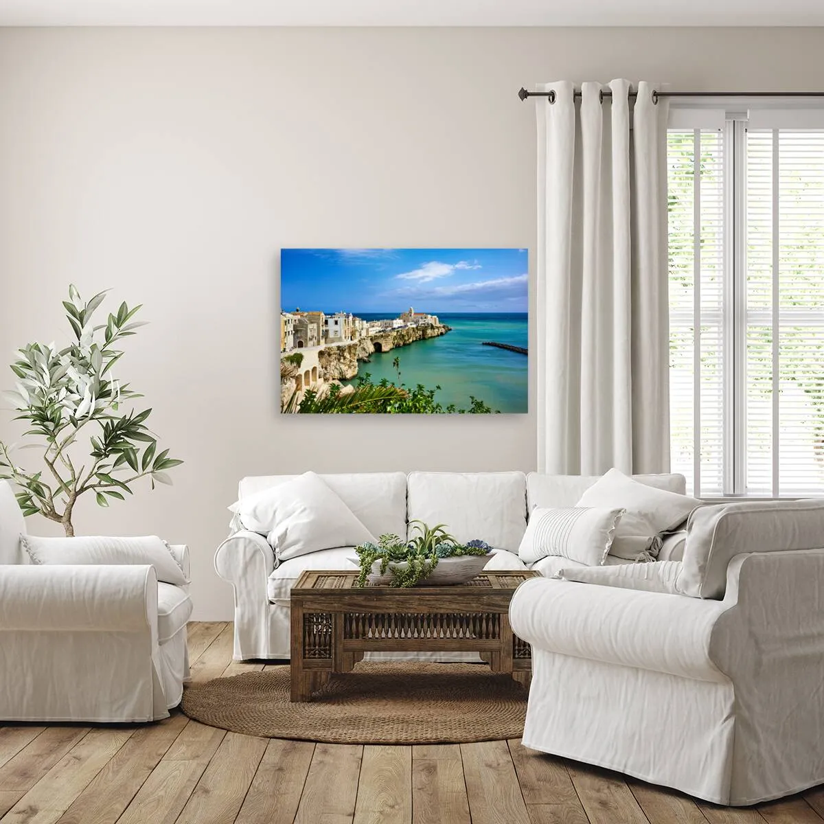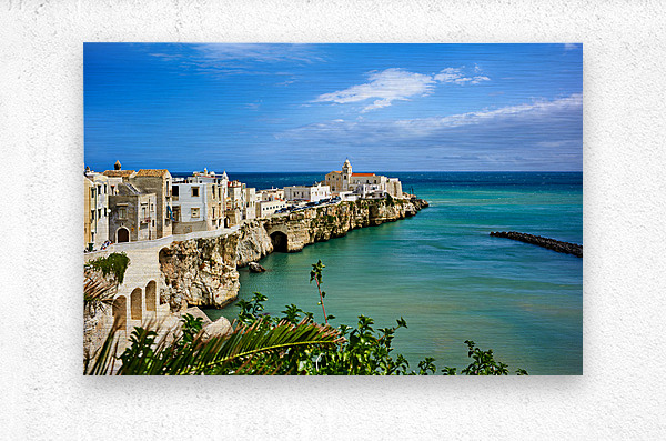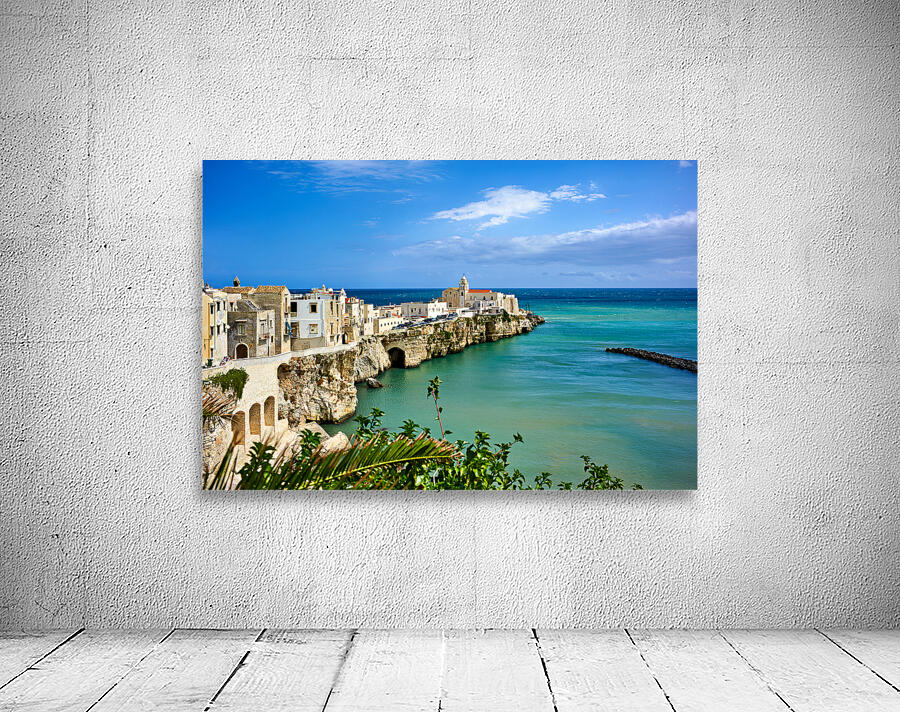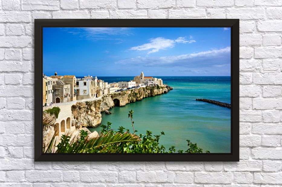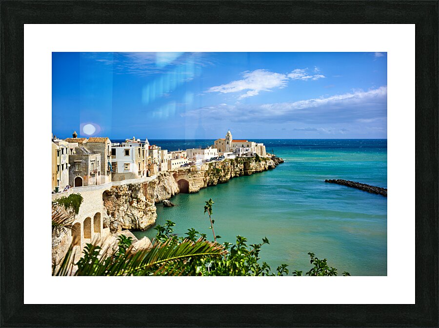 "Vieste Gargano. Apulia Puglia Italy. Cape San Francesco and San Francesco church" in a framed print.