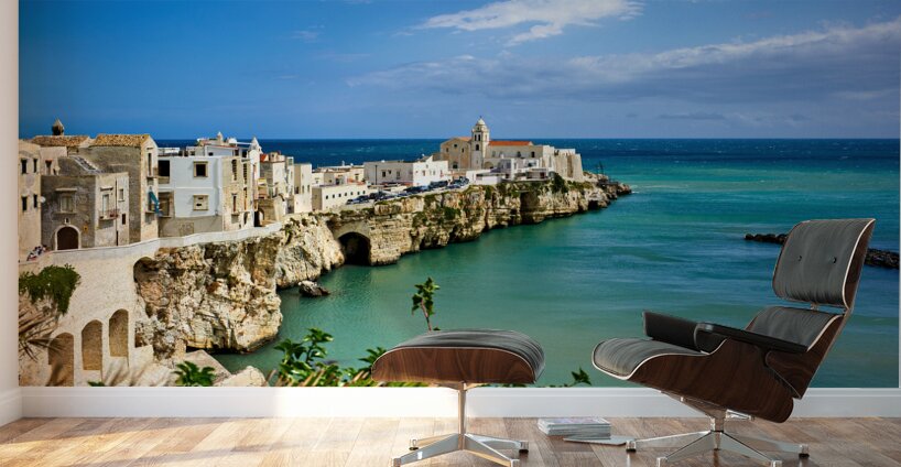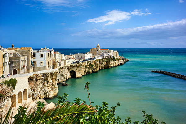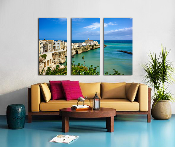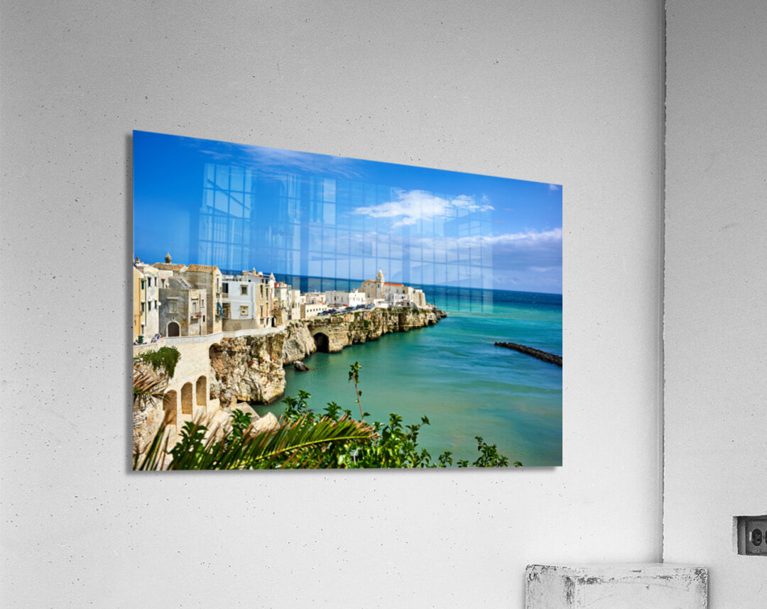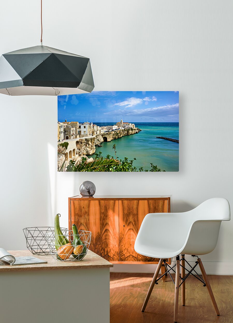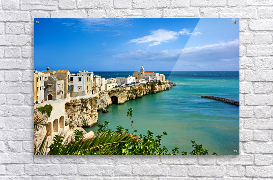 "Vieste Gargano. Apulia Puglia Italy. Cape San Francesco and San Francesco church" in a framed print.