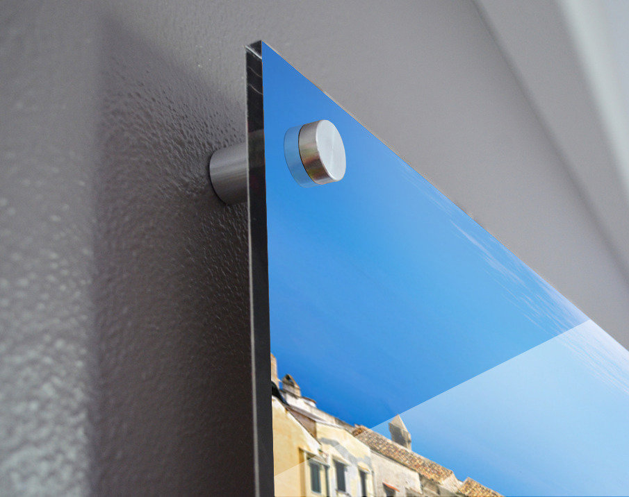 Printed to the edge - Ready to hang - provided with 4 premium polished aluminum stand off ( wall screws and mounting hardware provided )