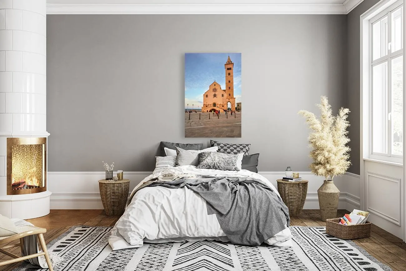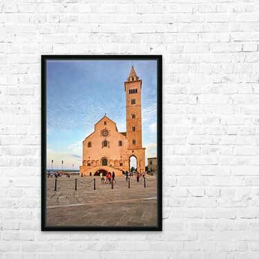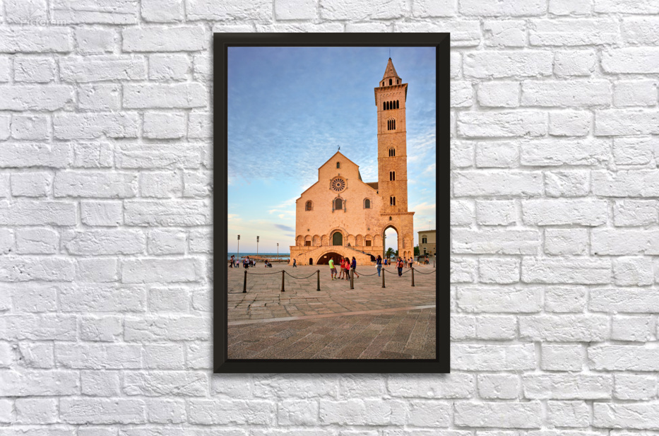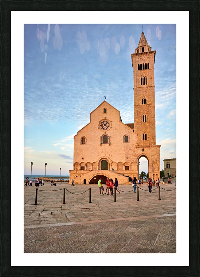"Apulia Puglia Italy. Trani. Basilica Cattedrale Beata Maria Vergine Assunta dedicated to Saint Nicholas at dusk" in a framed print.