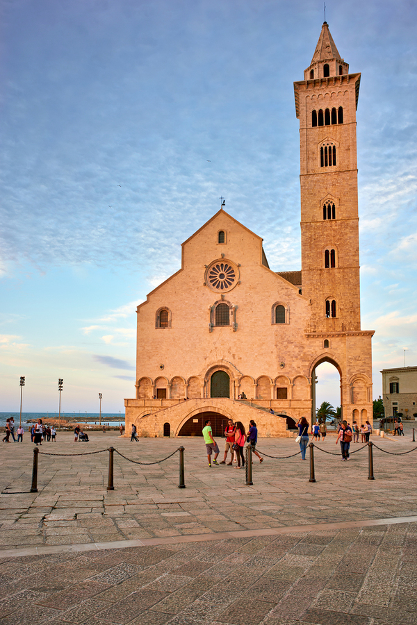 Apulia Puglia Italy. Trani. Basilica Cattedrale Beata Maria Vergine Assunta dedicated to Saint Nicholas at dusk