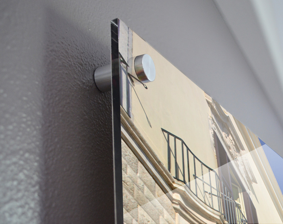 Printed to the edge - Ready to hang - provided with 4 premium polished aluminum stand off ( wall screws and mounting hardware provided )