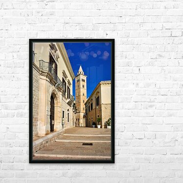 "Apulia Puglia Italy. Trani. Basilica Cattedrale Beata Maria Vergine Assunta dedicated to Saint Nicholas" in a framed print.