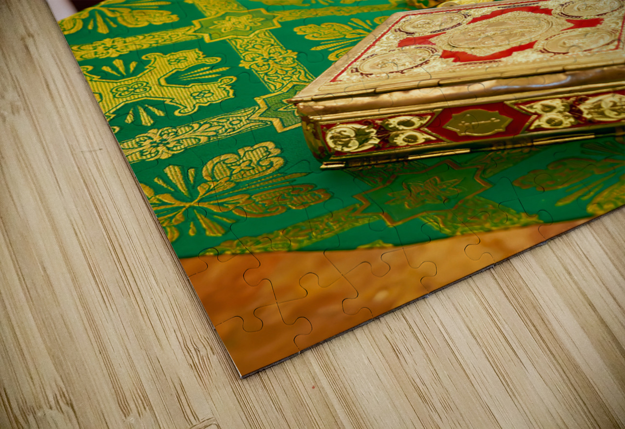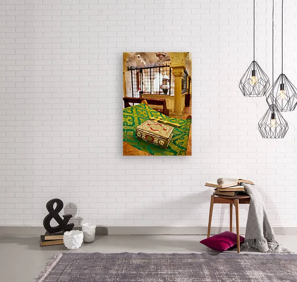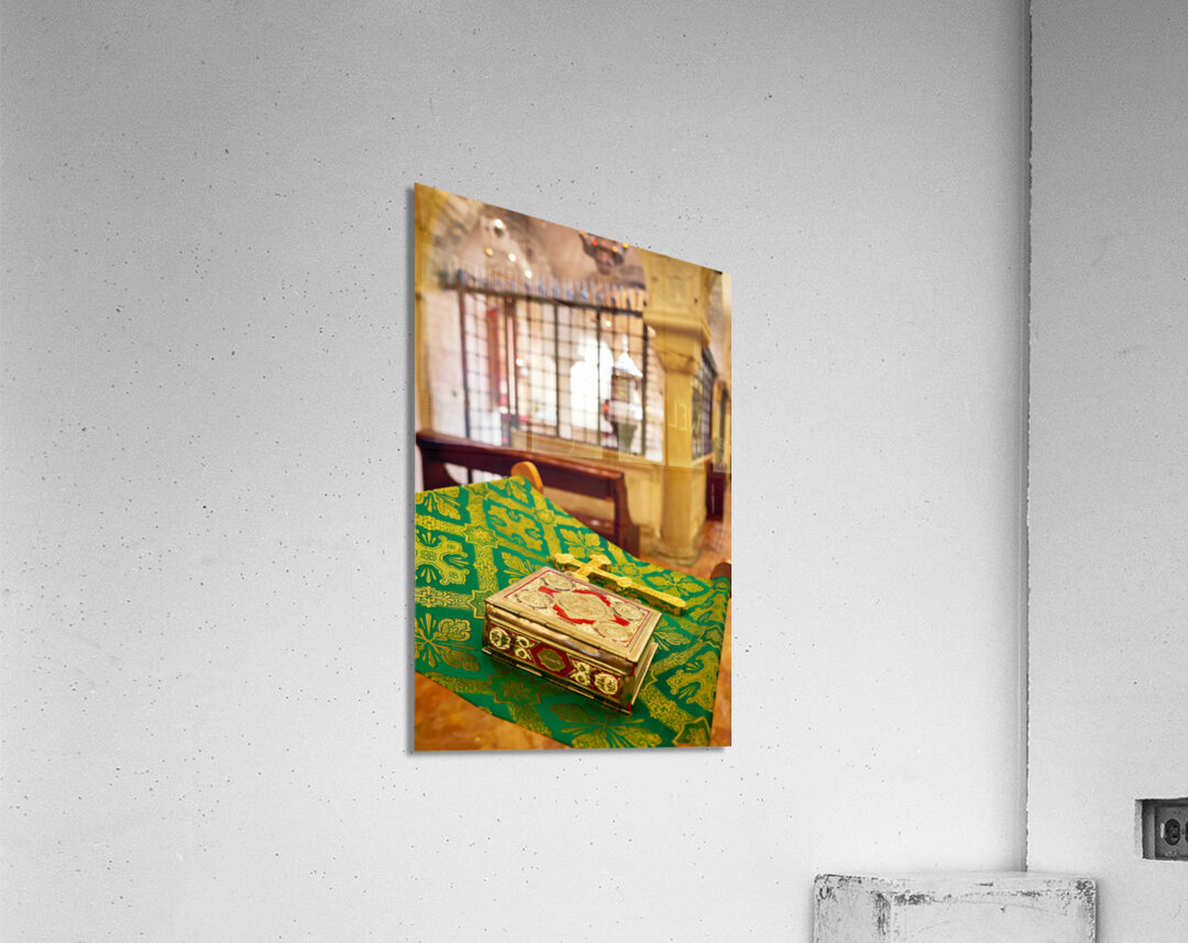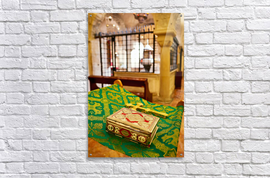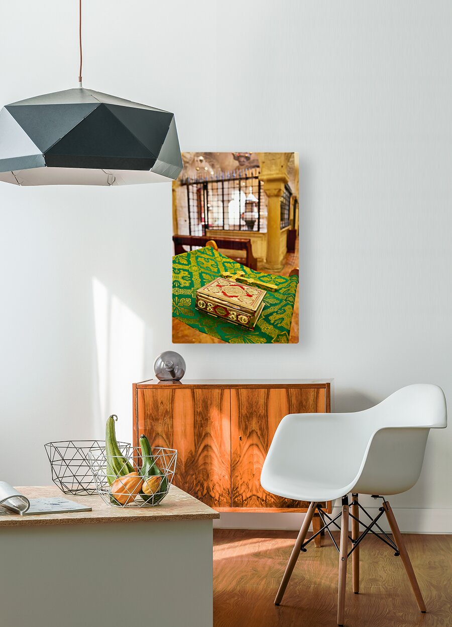"Apulia Puglia Italy. Bari. The Pontifical Basilica of Saint Nicholas. The Holy Bible" in a framed print.
