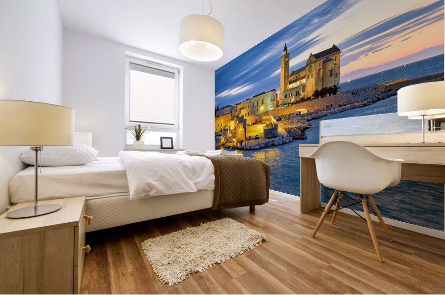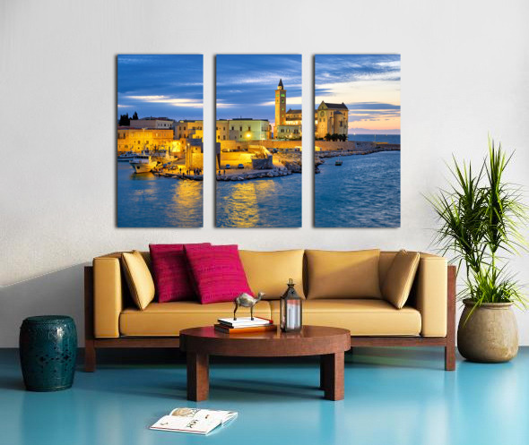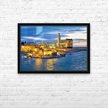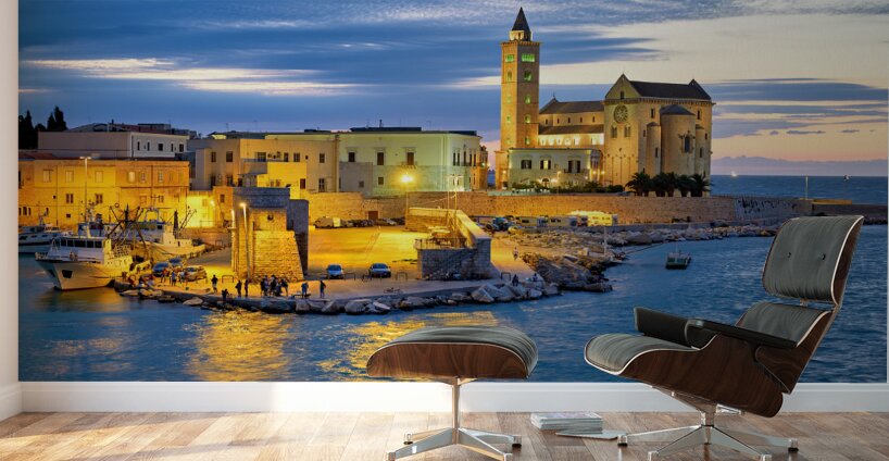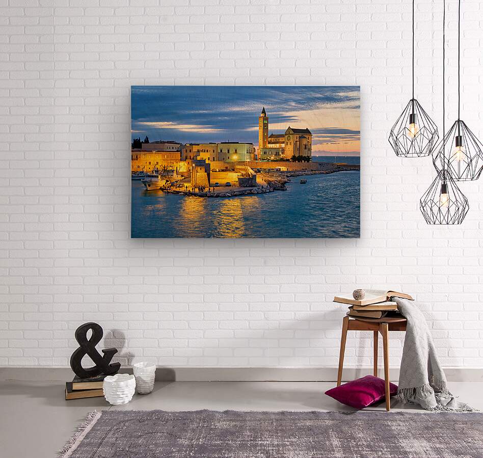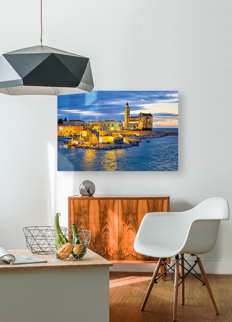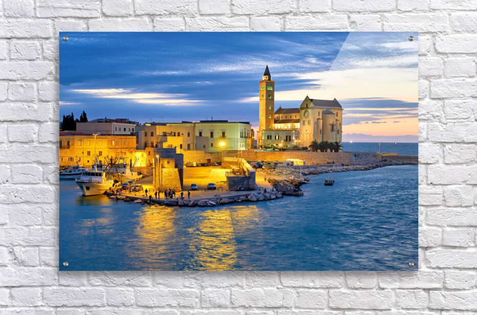 "Apulia Puglia Italy. Trani. Basilica Cattedrale Beata Maria Vergine Assunta dedicated to Saint Nicholas at dusk" in a framed print.